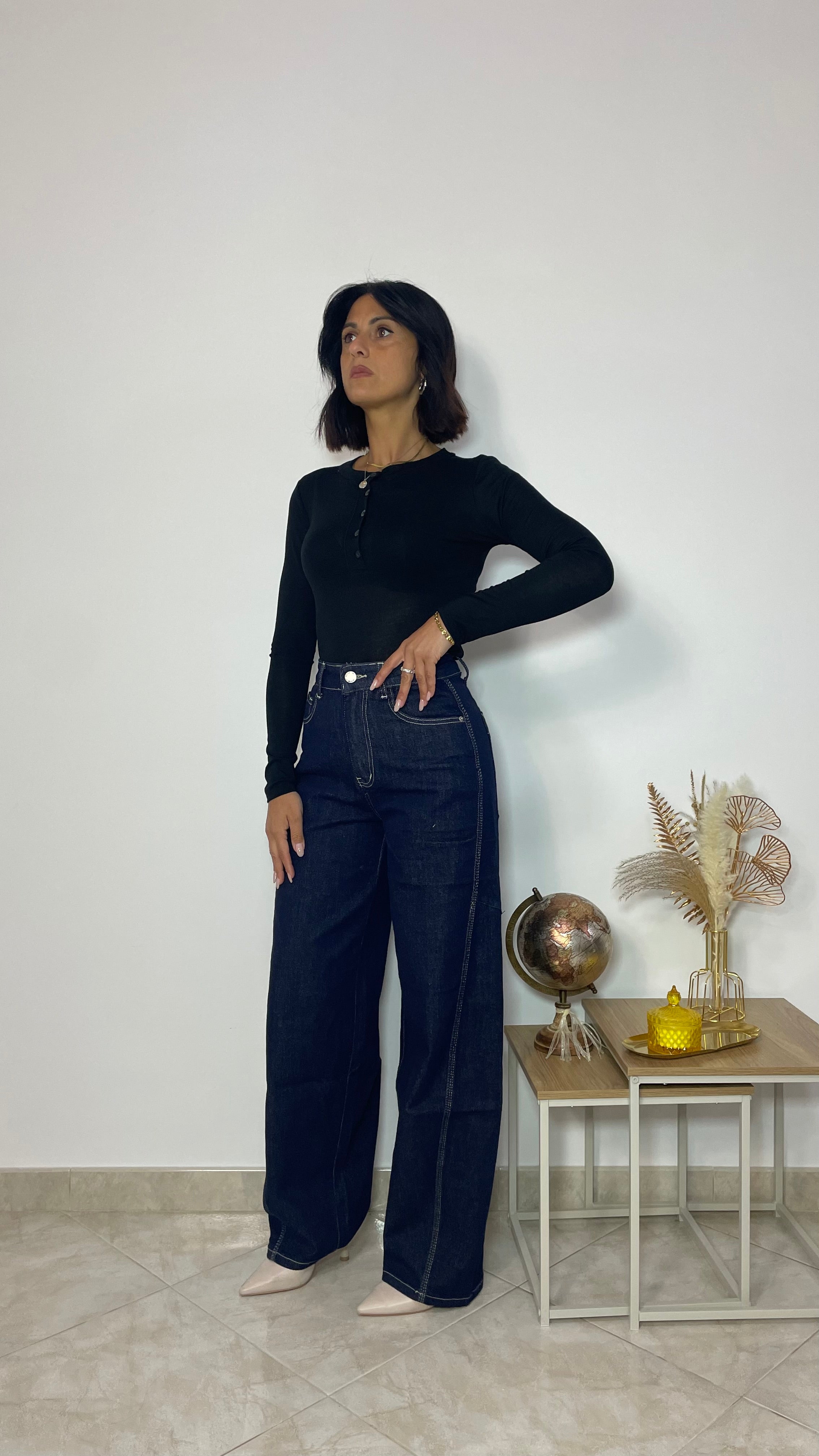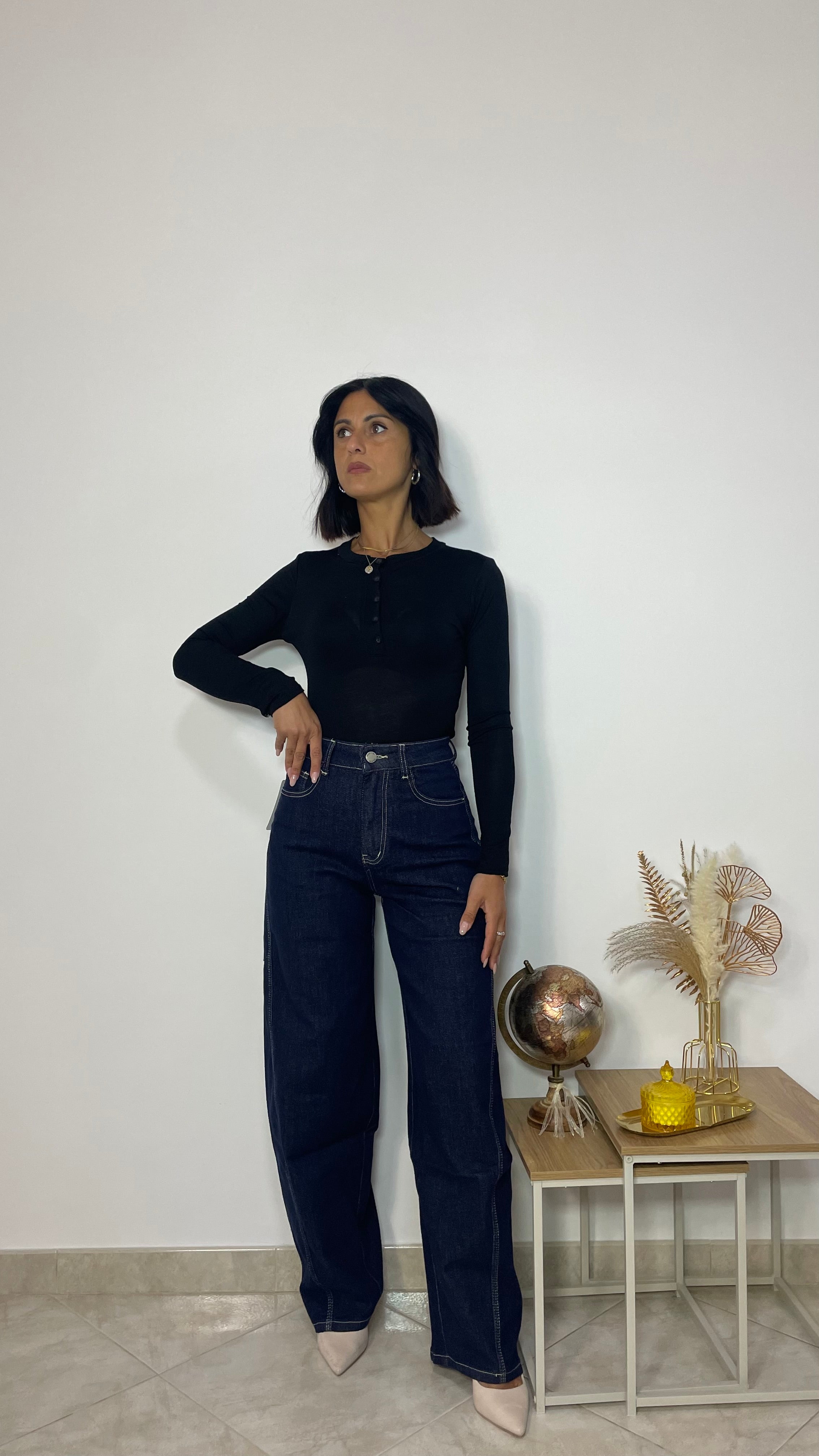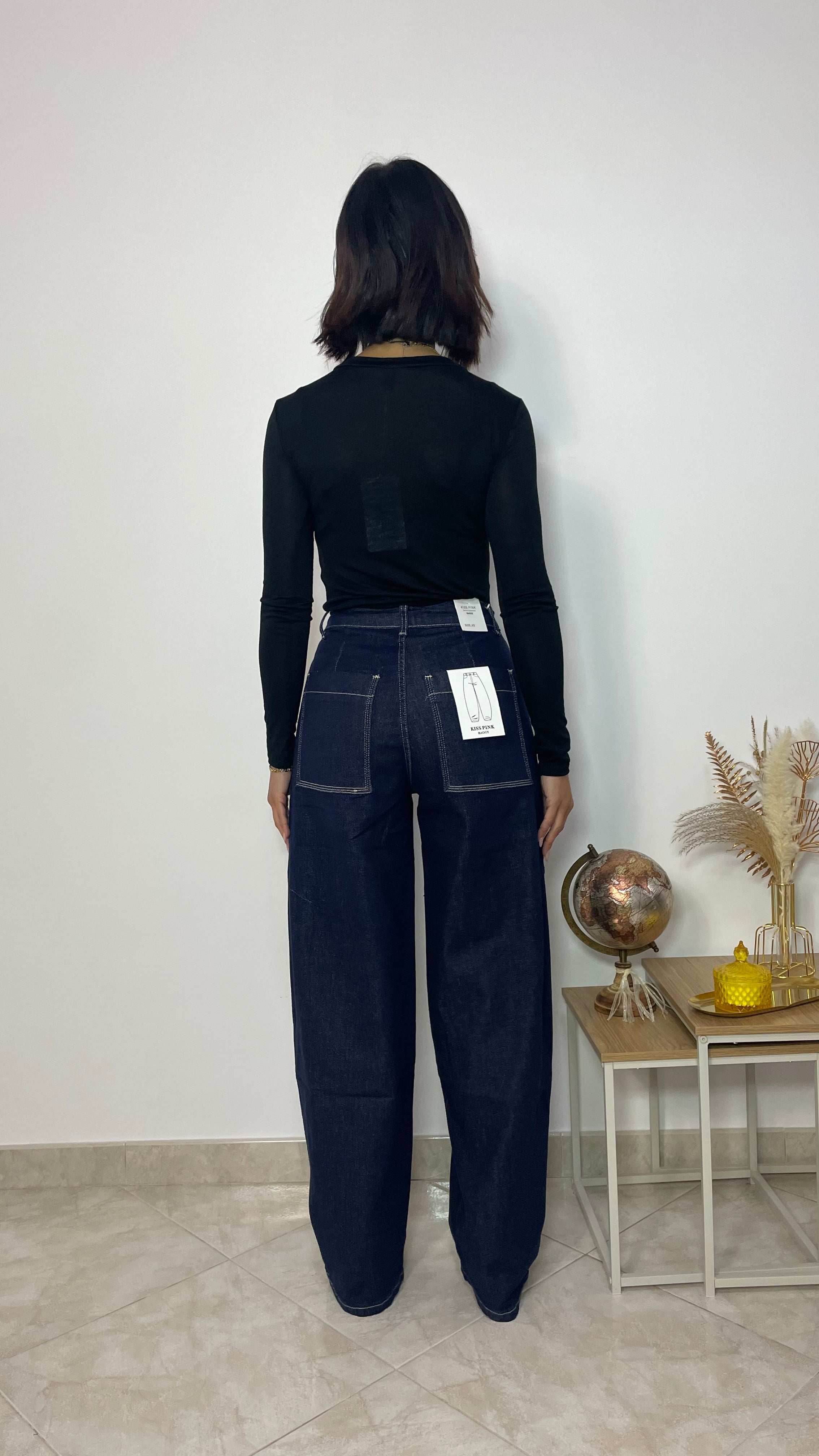 Jeans Balloonblu scuro elasticizzato e vita alta.