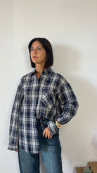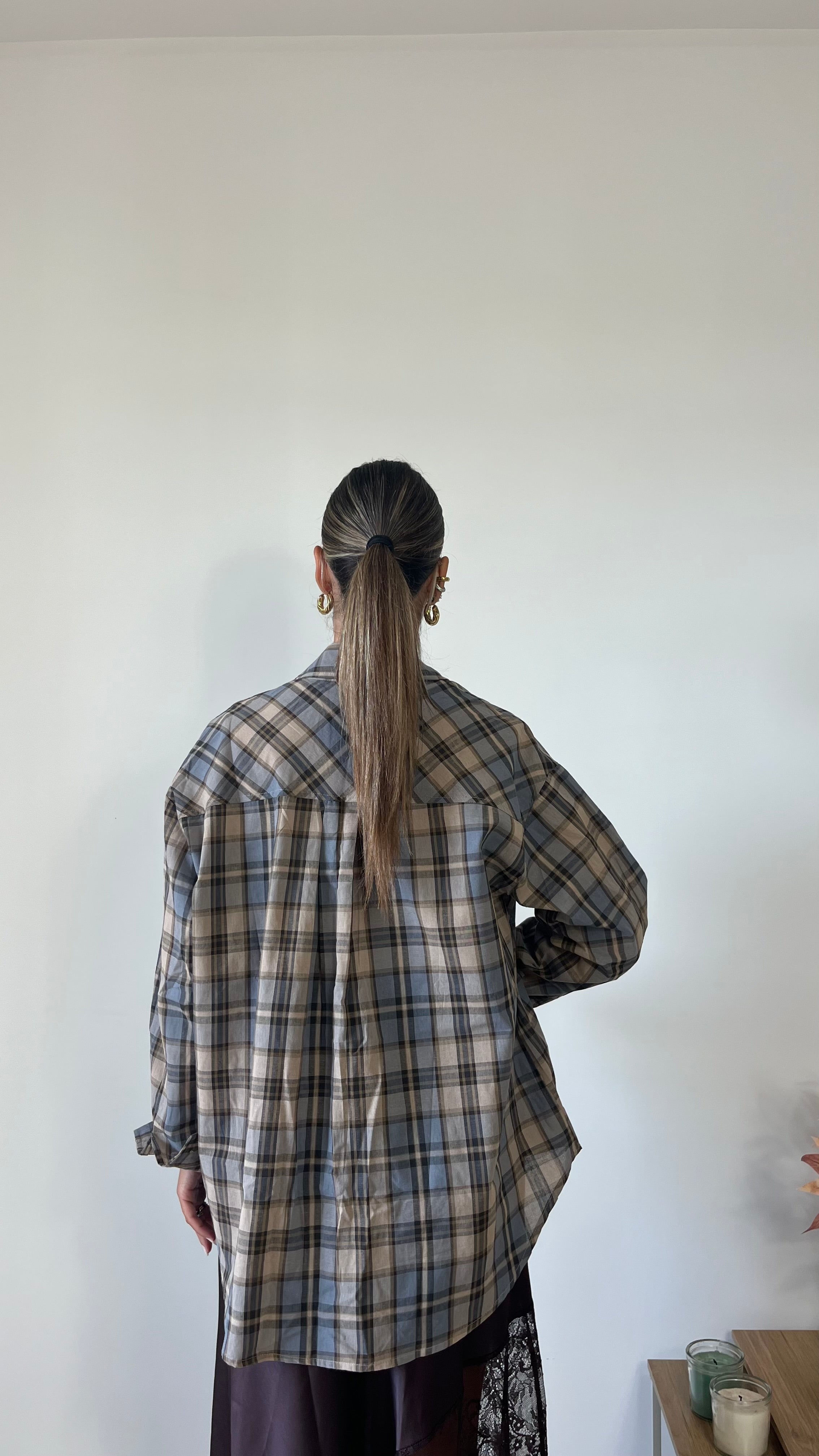La camicia ha una vestibilità oversize, con bottoni avanti ed ai polsi e taschino sul seno.