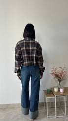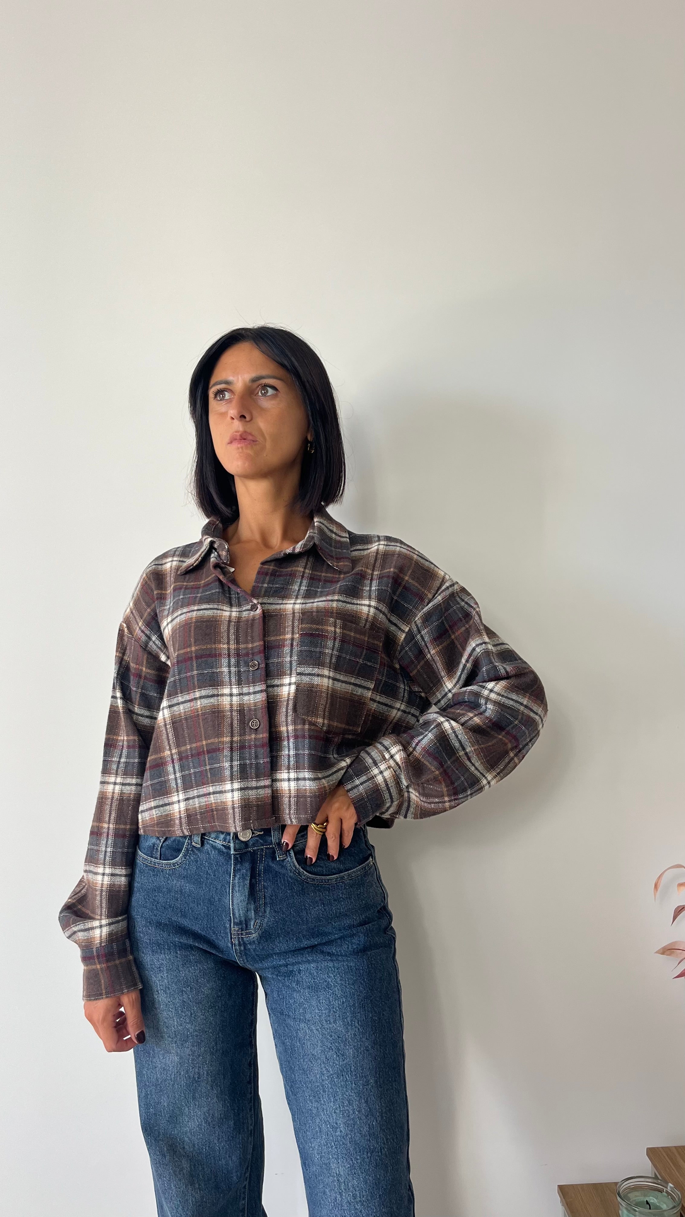 Camicia modello Crop , con fantasia a quadri.