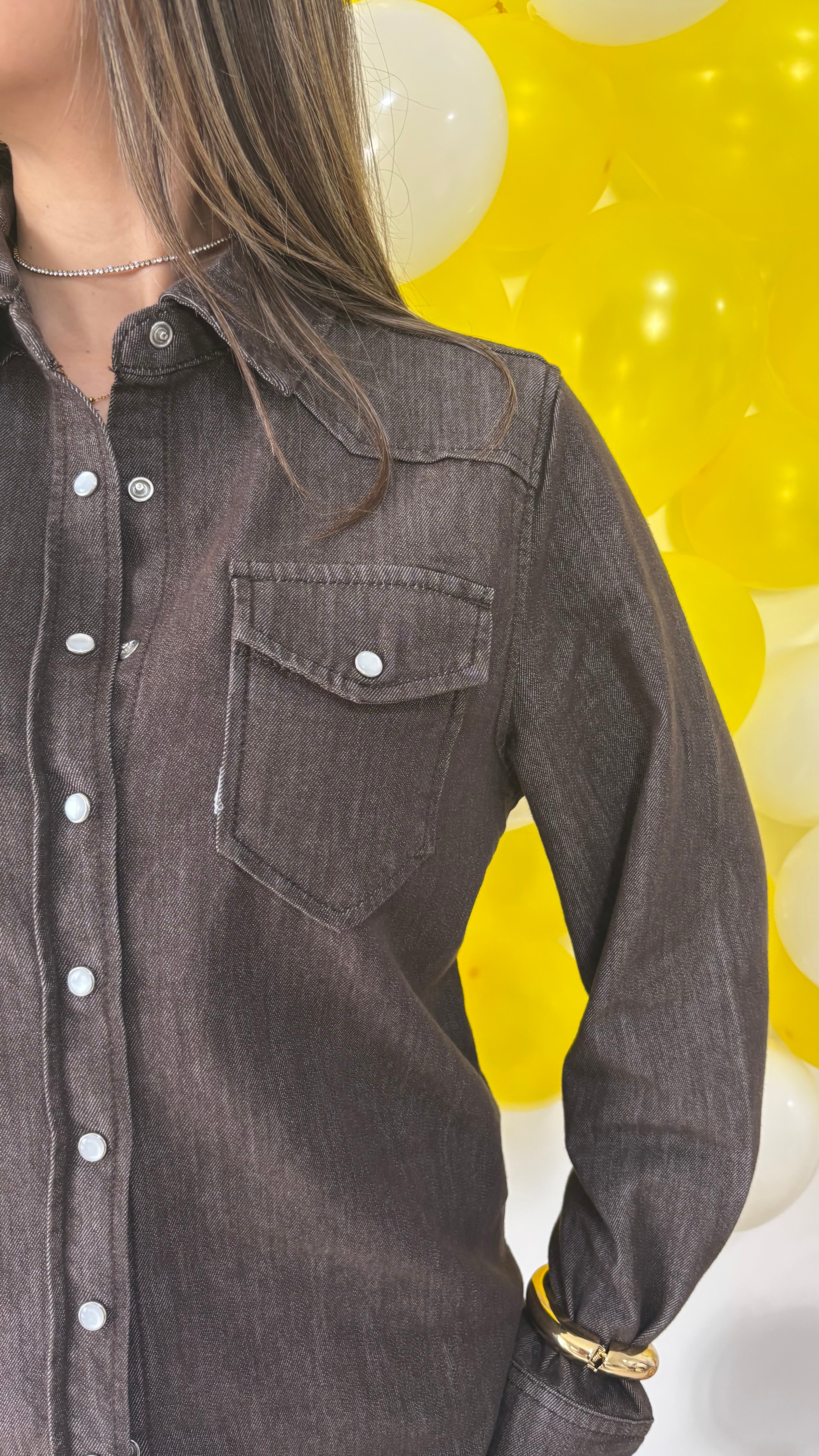 La camicia è in denim leggermente elasticizzato.
