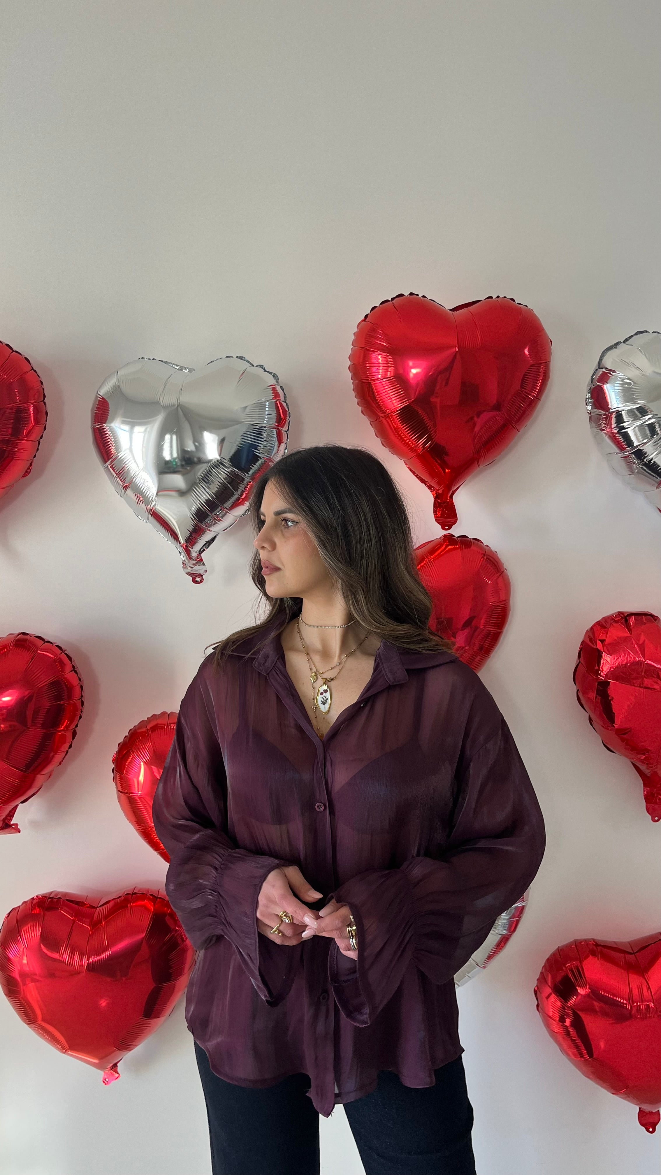 Camicia semivelata effetto lurex con elastico sul polso .