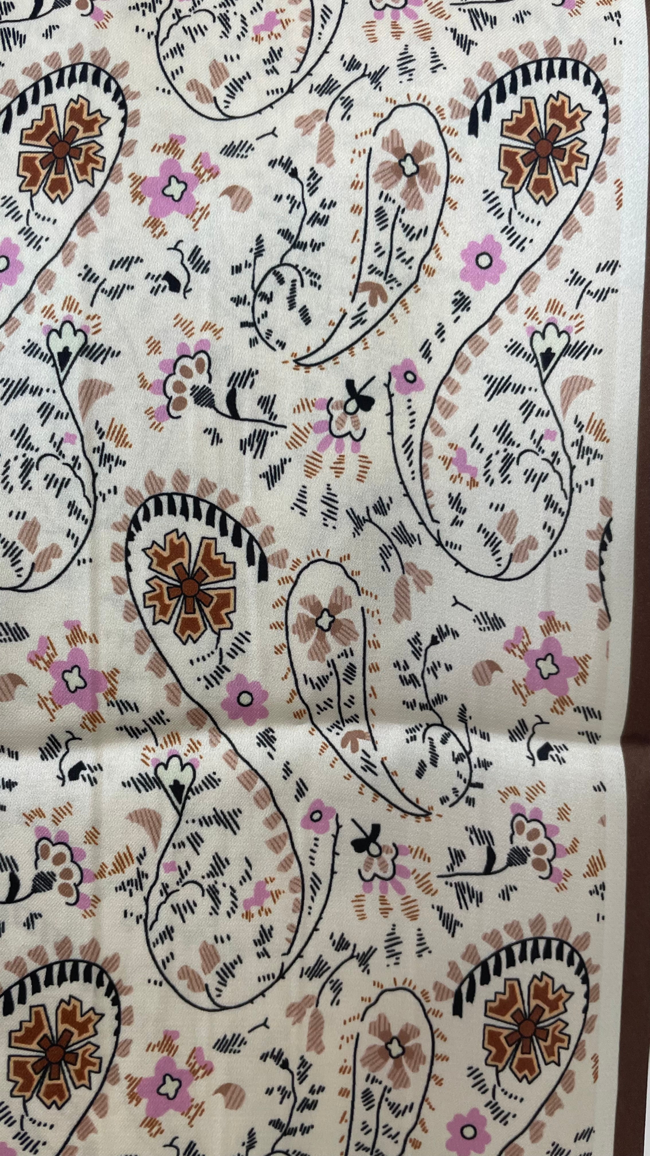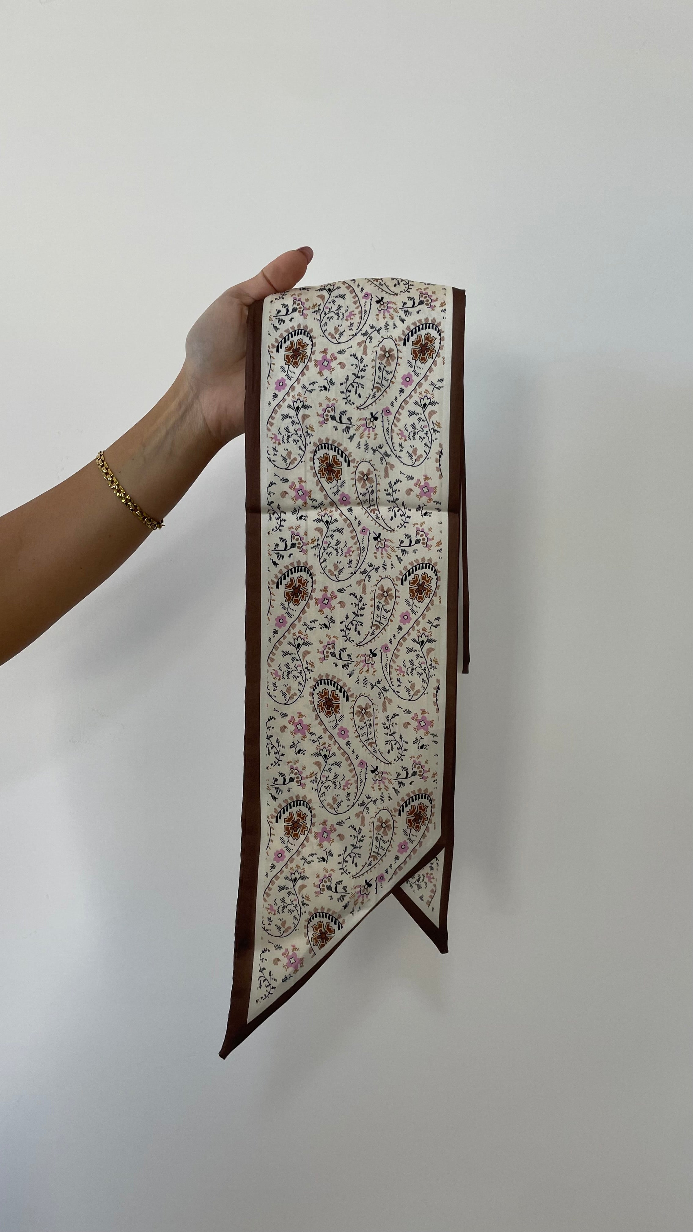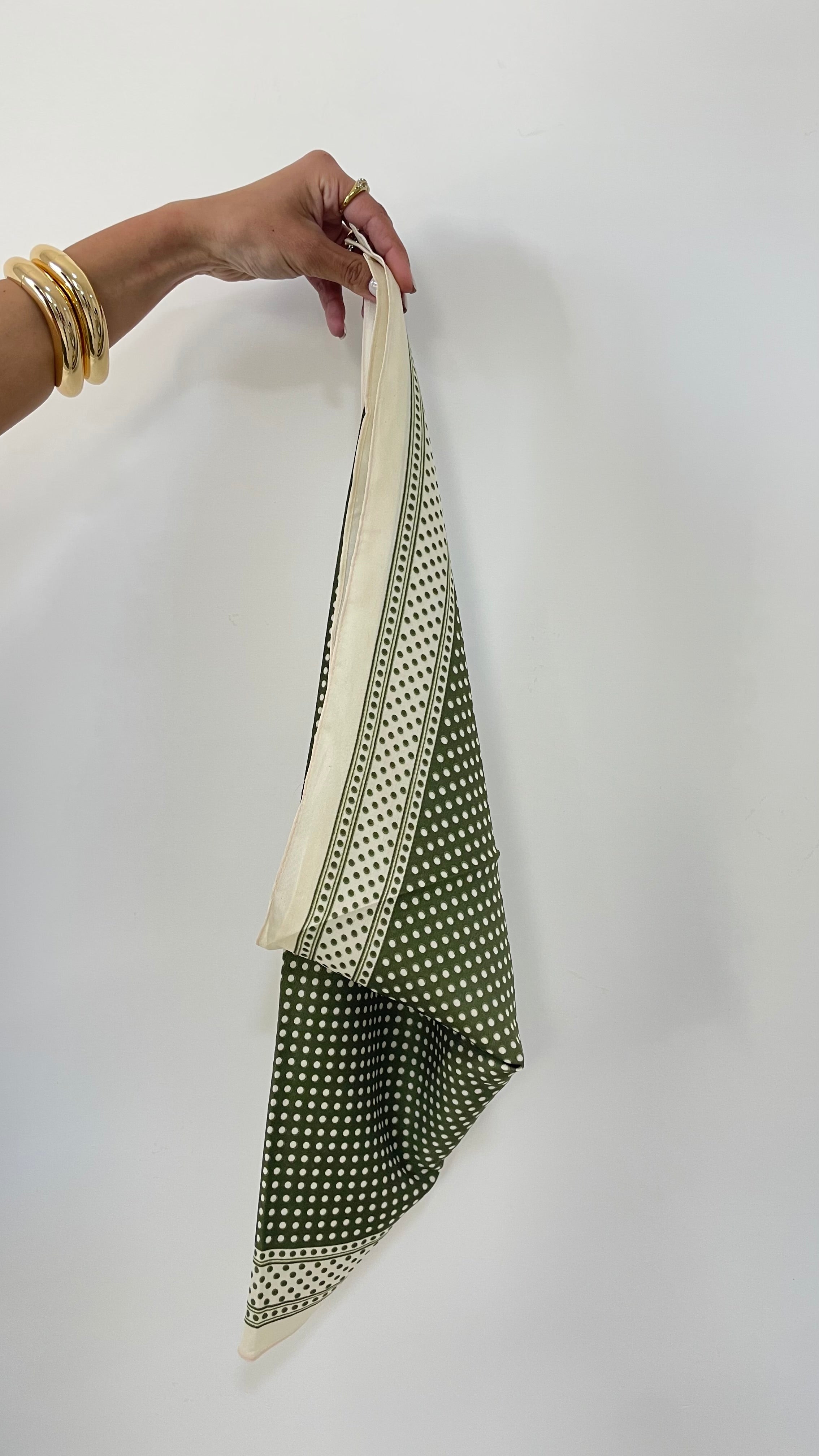 In questo caso il foulard nero e verde acido sono rettangolari grandi mentre quello marrone con fiorellini è un modello sciarpetta, stretto e lungo.
