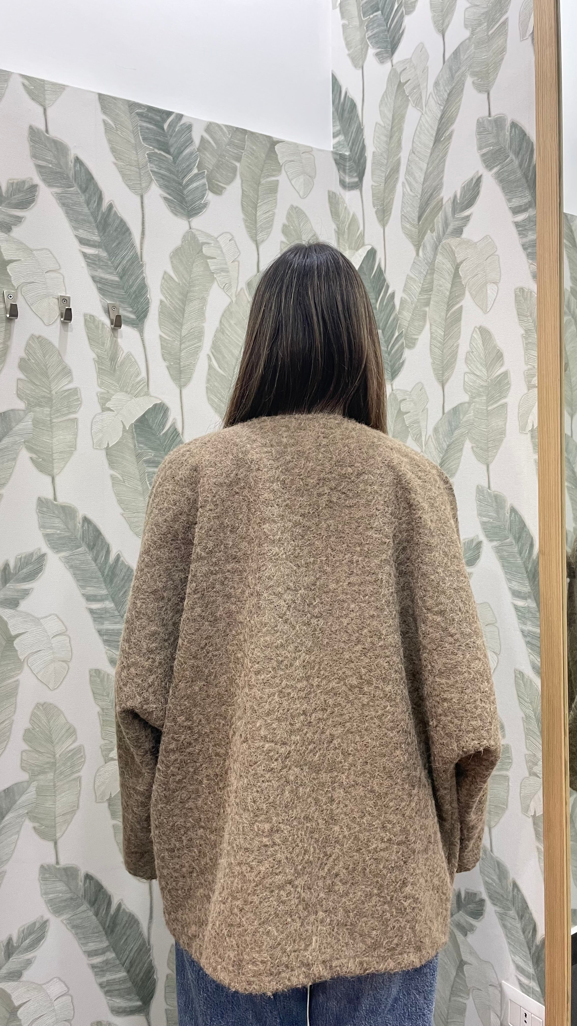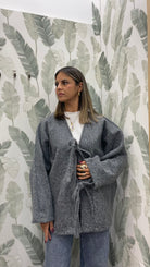 La nuova giacca fiocco è un modello oversize con vestibilità comoda fino alla tg XL.