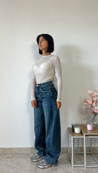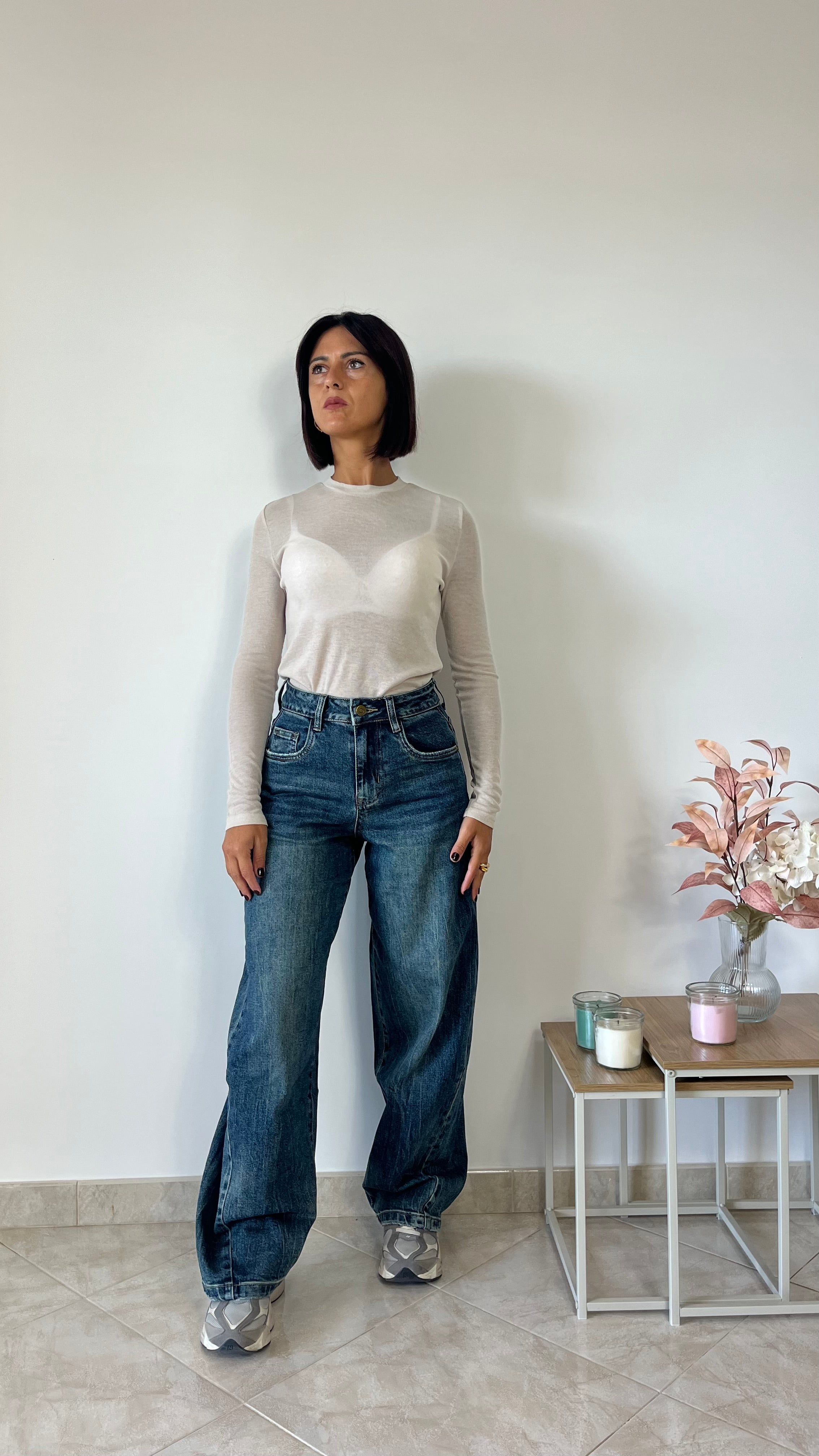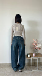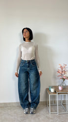 Jeans modello balloon , vita alta e gamba ampia a palloncino.