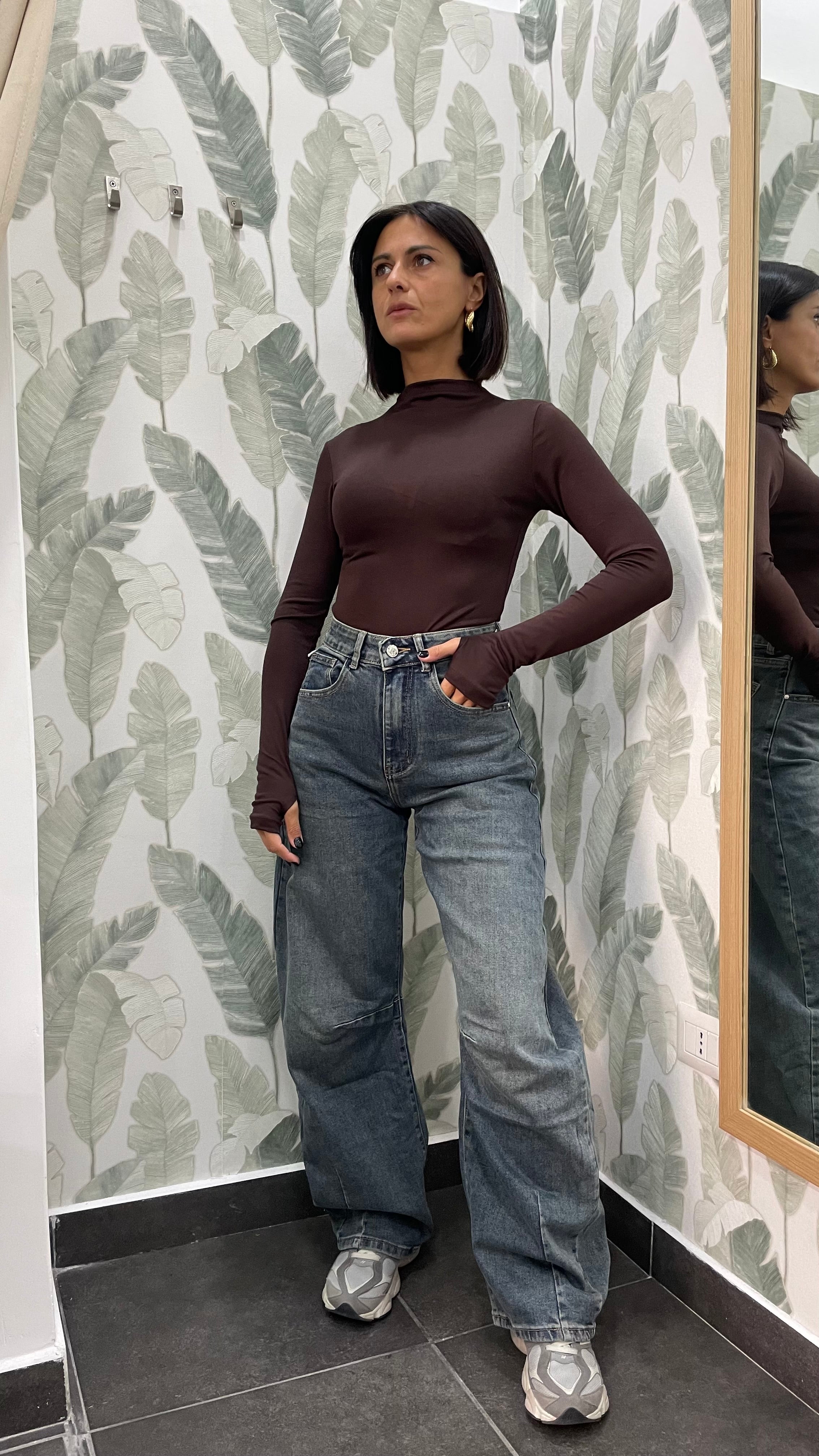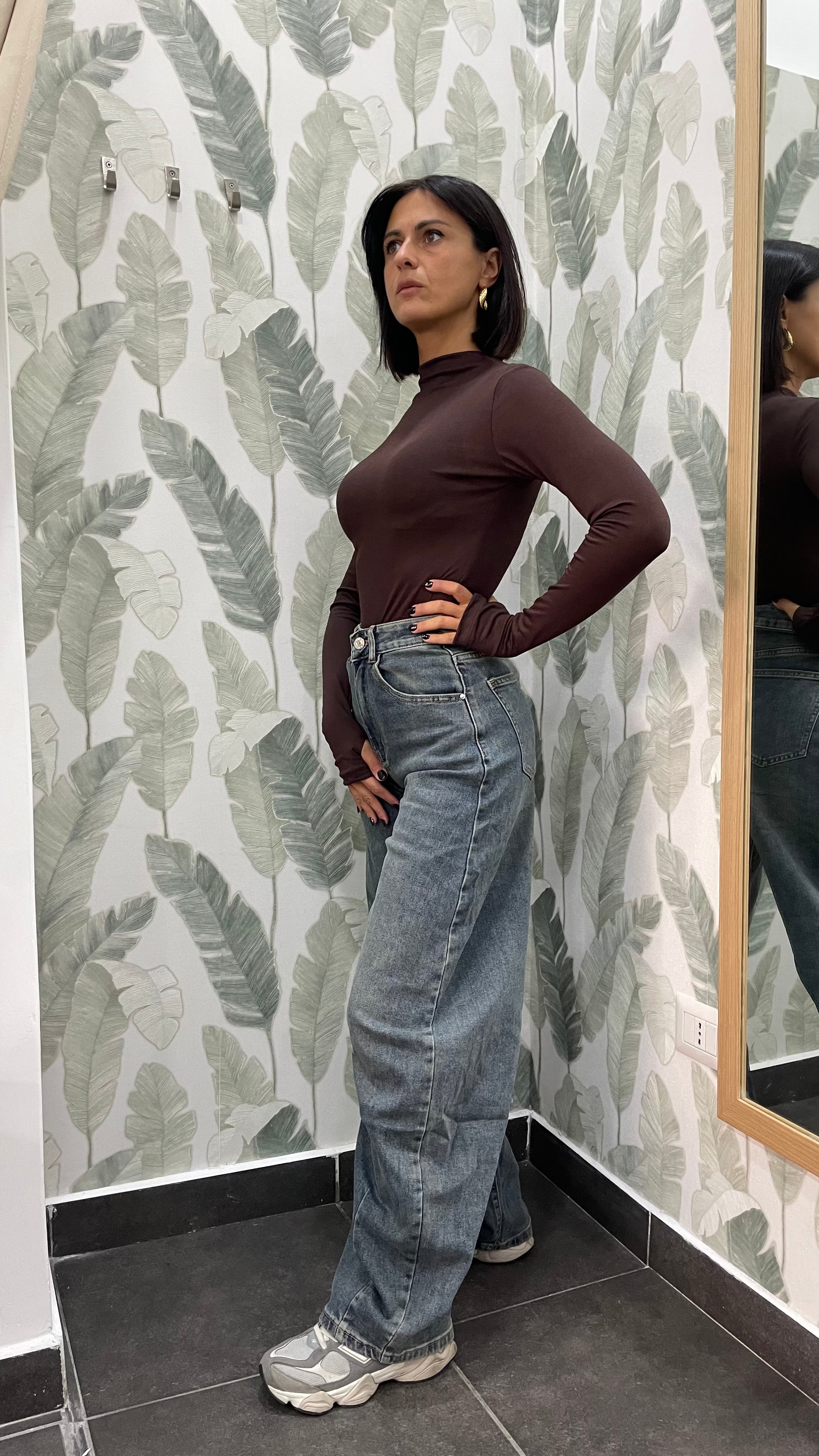 Jeans vita alta modello battello . Elasticizzato