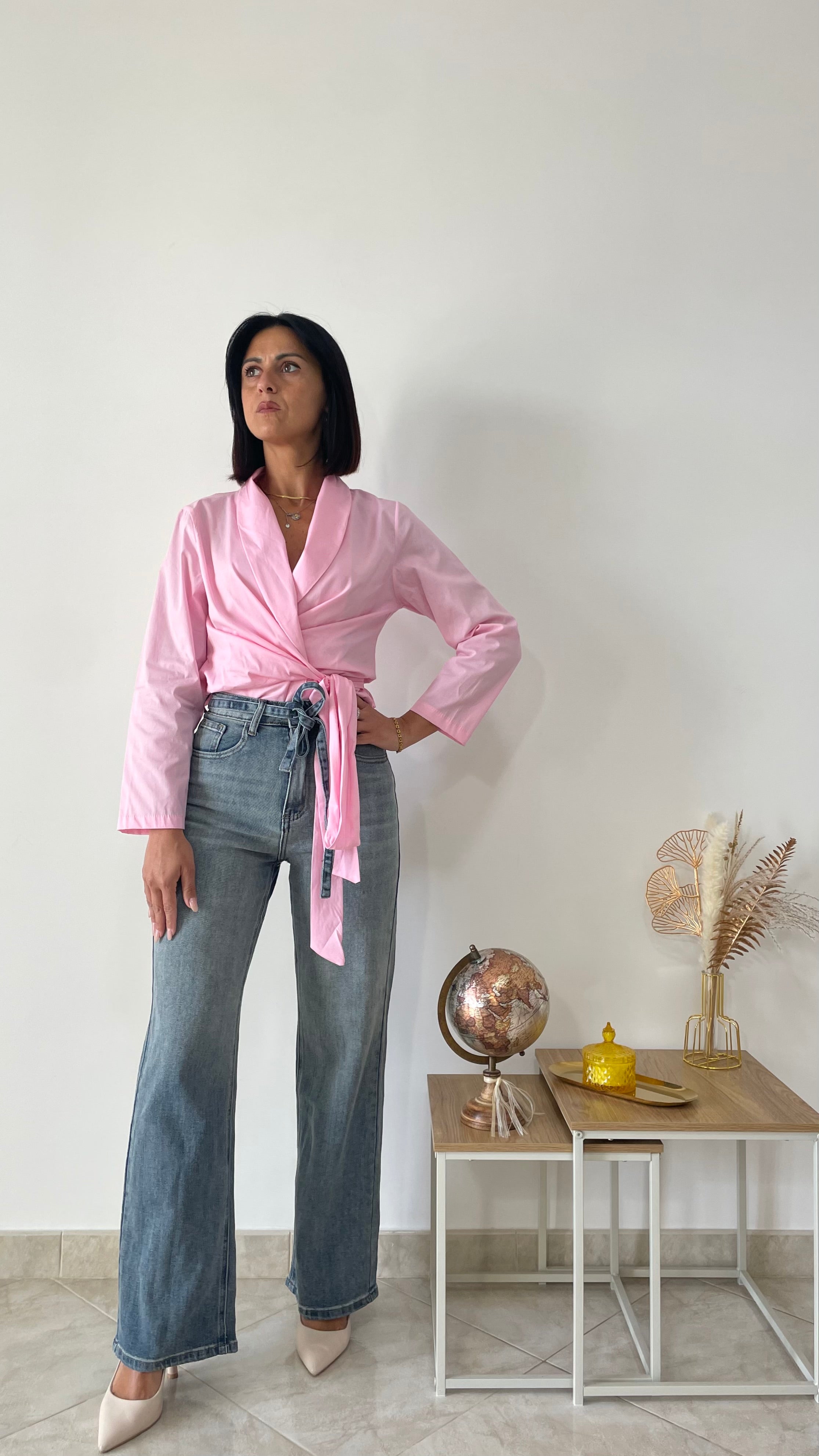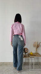 Il jeans è un modello gamba dritta ed ha la vita alta.