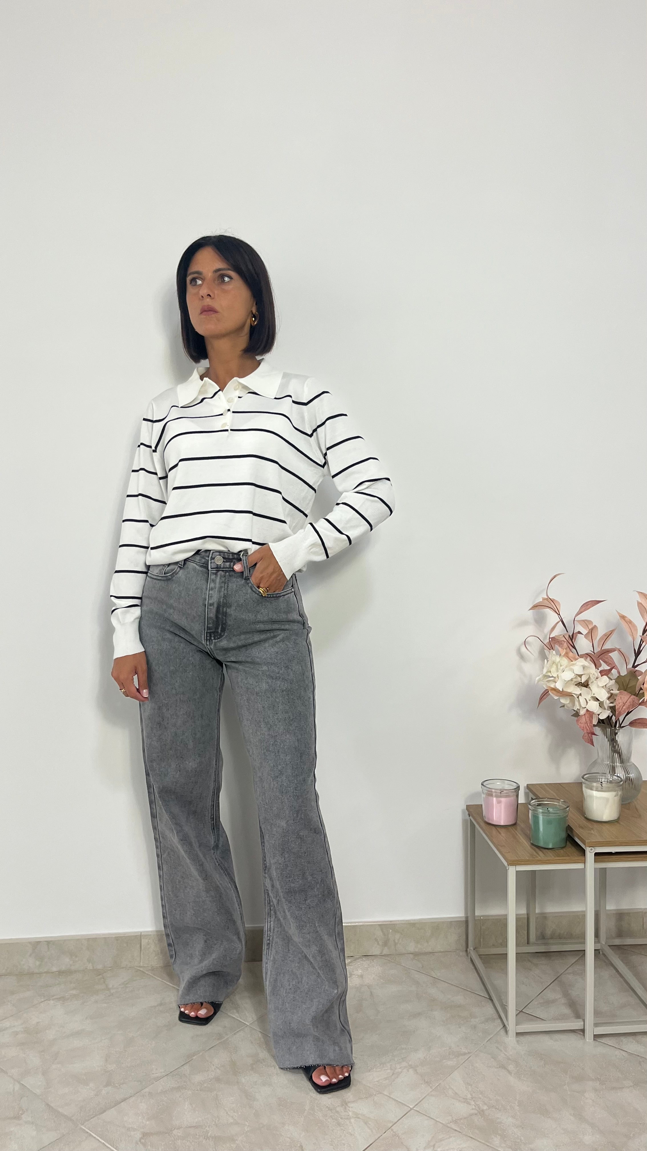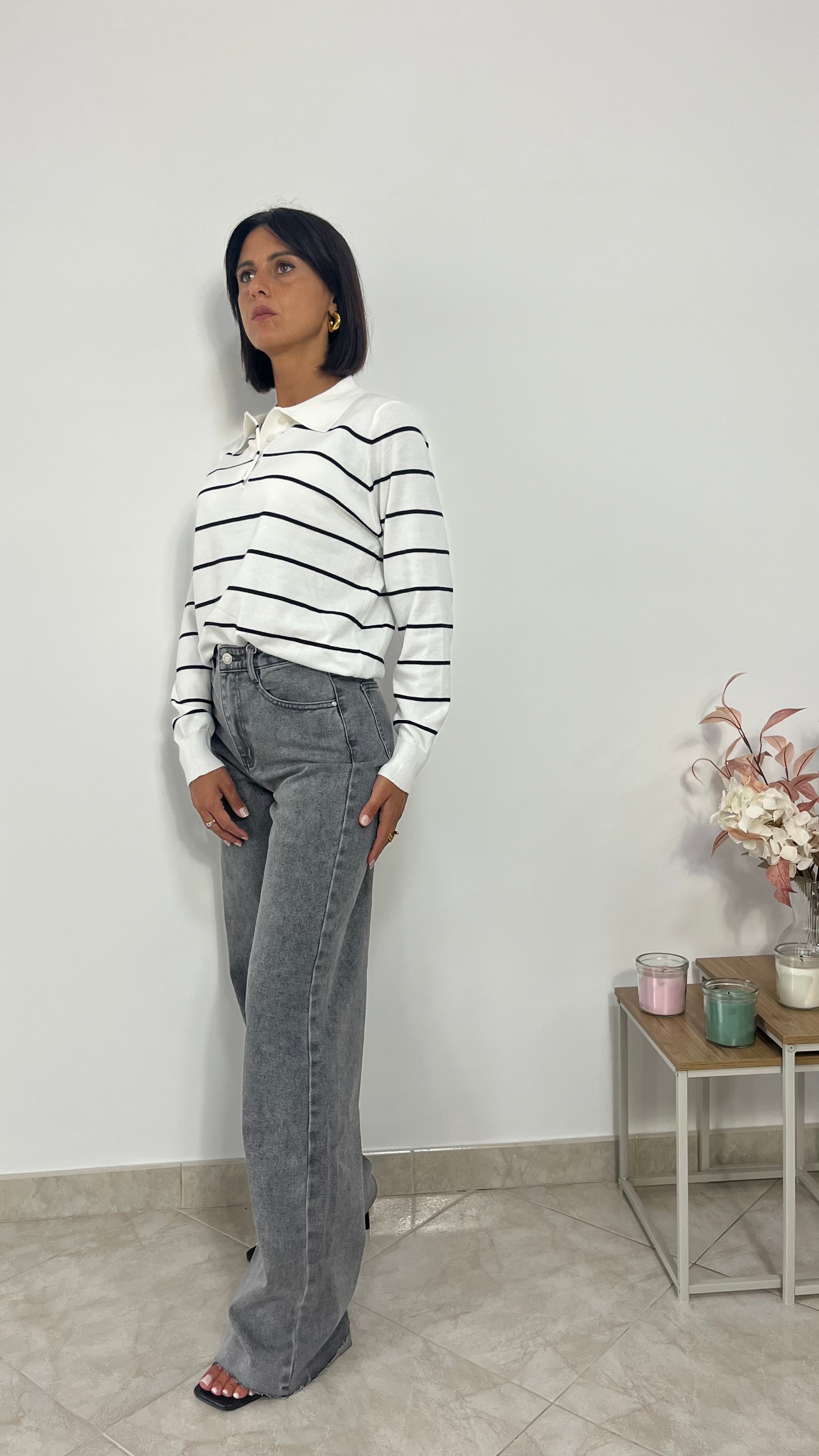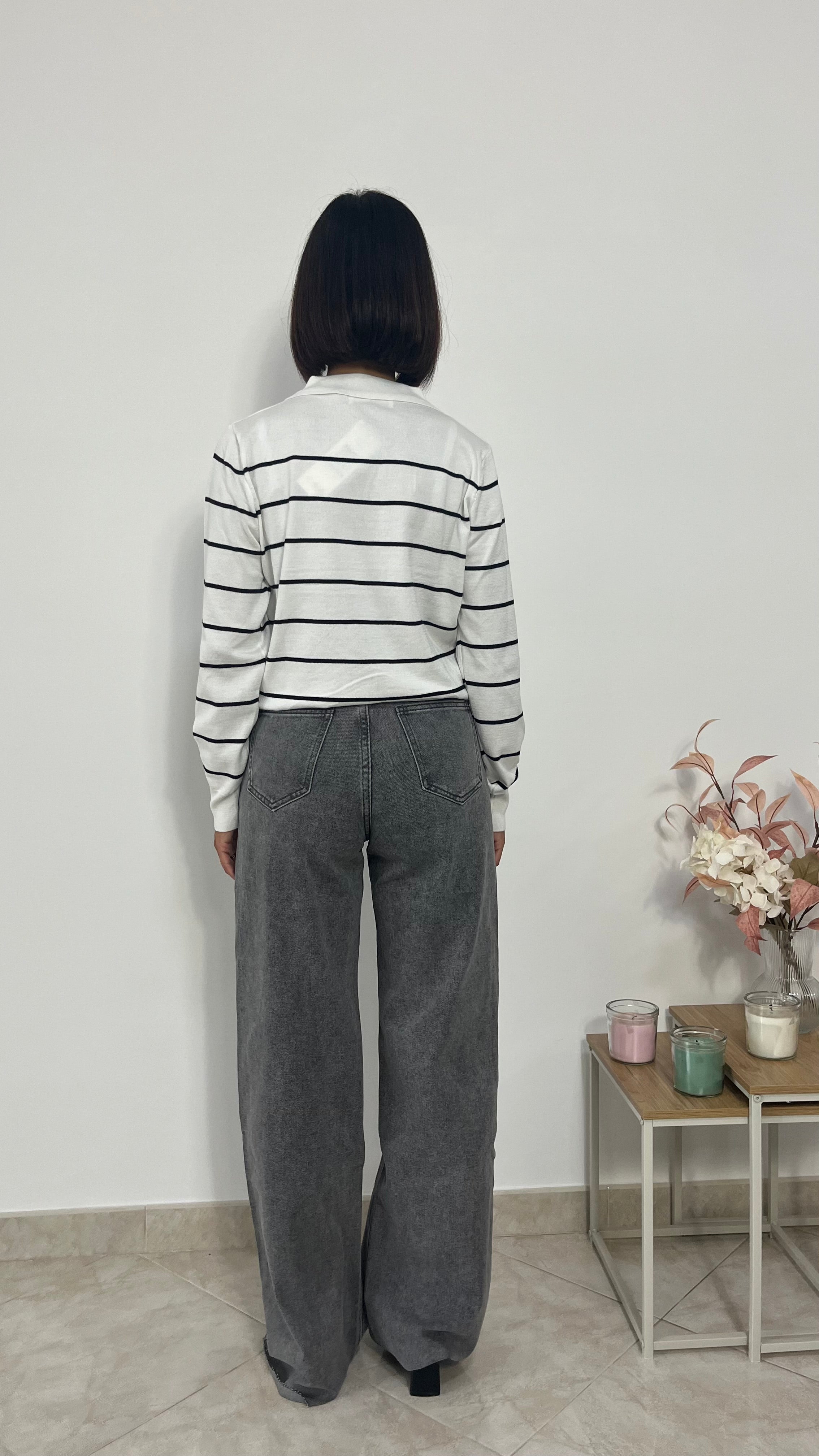 Jeans grigio modello gamba dritta.