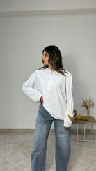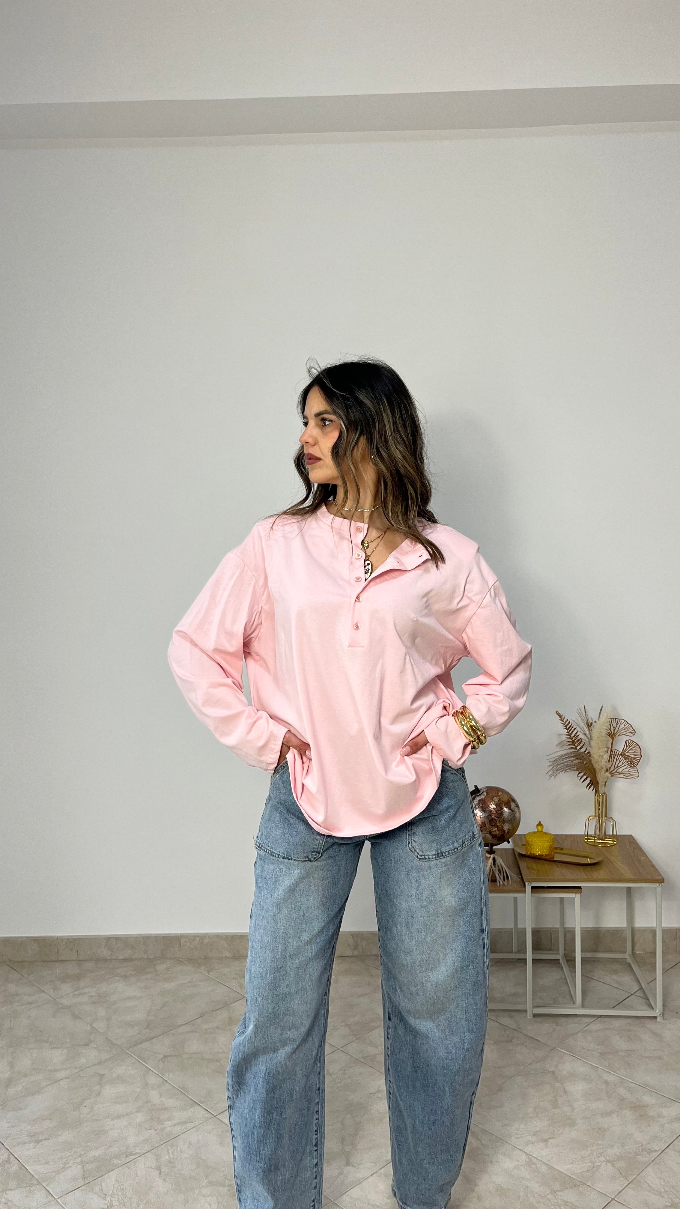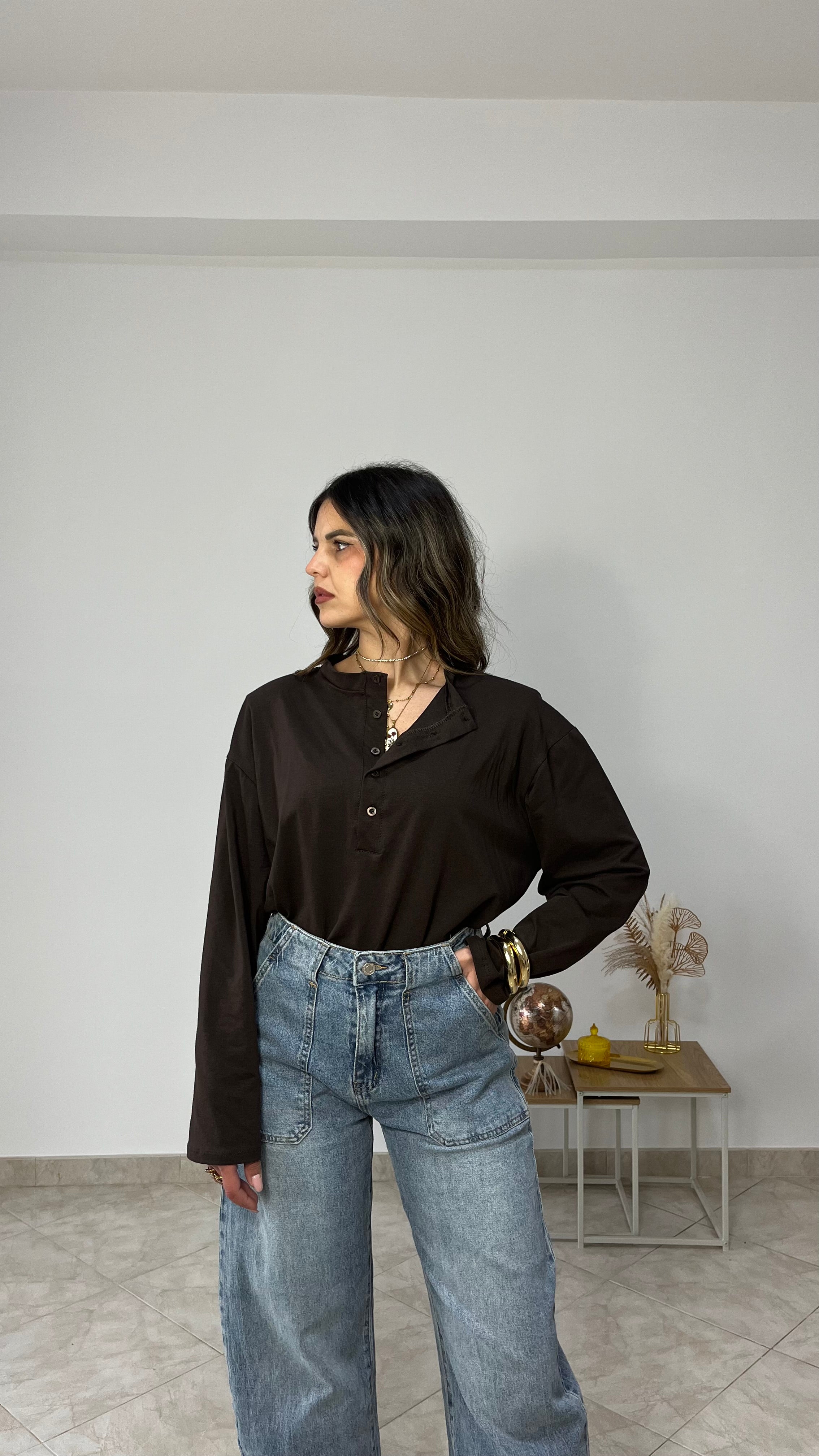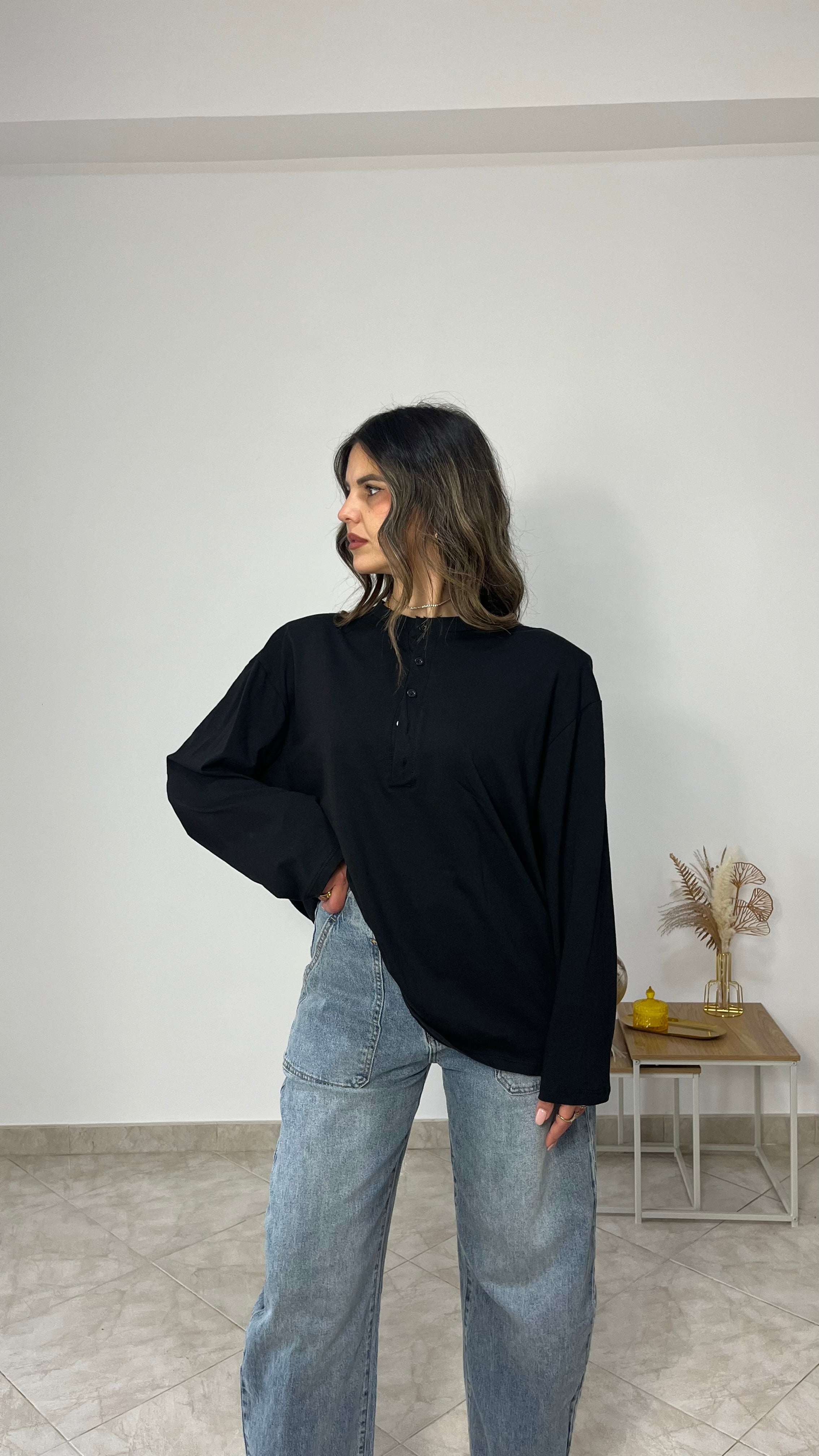 Maglia manica lunghe con spalline imbottite e bottoncini.