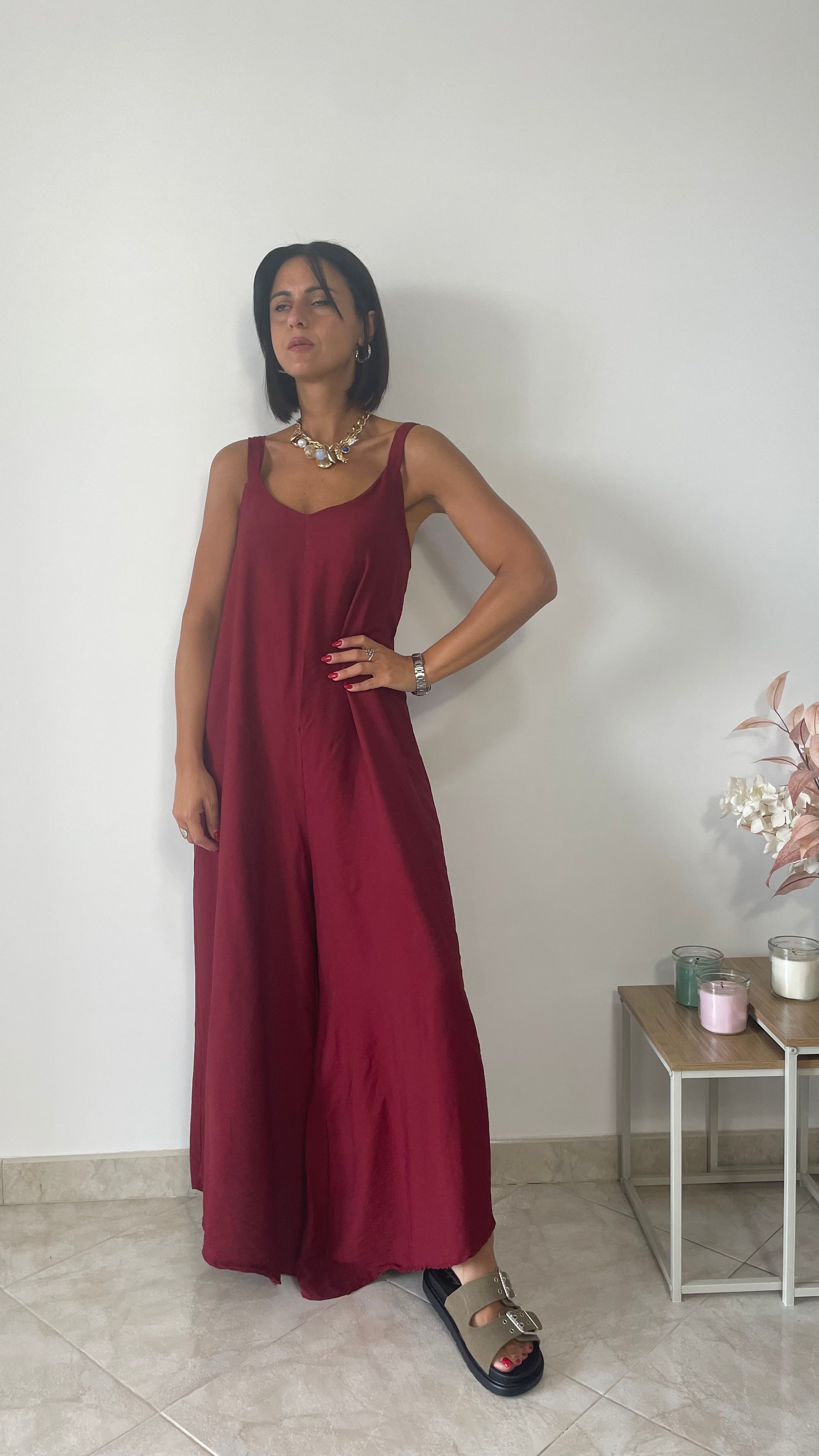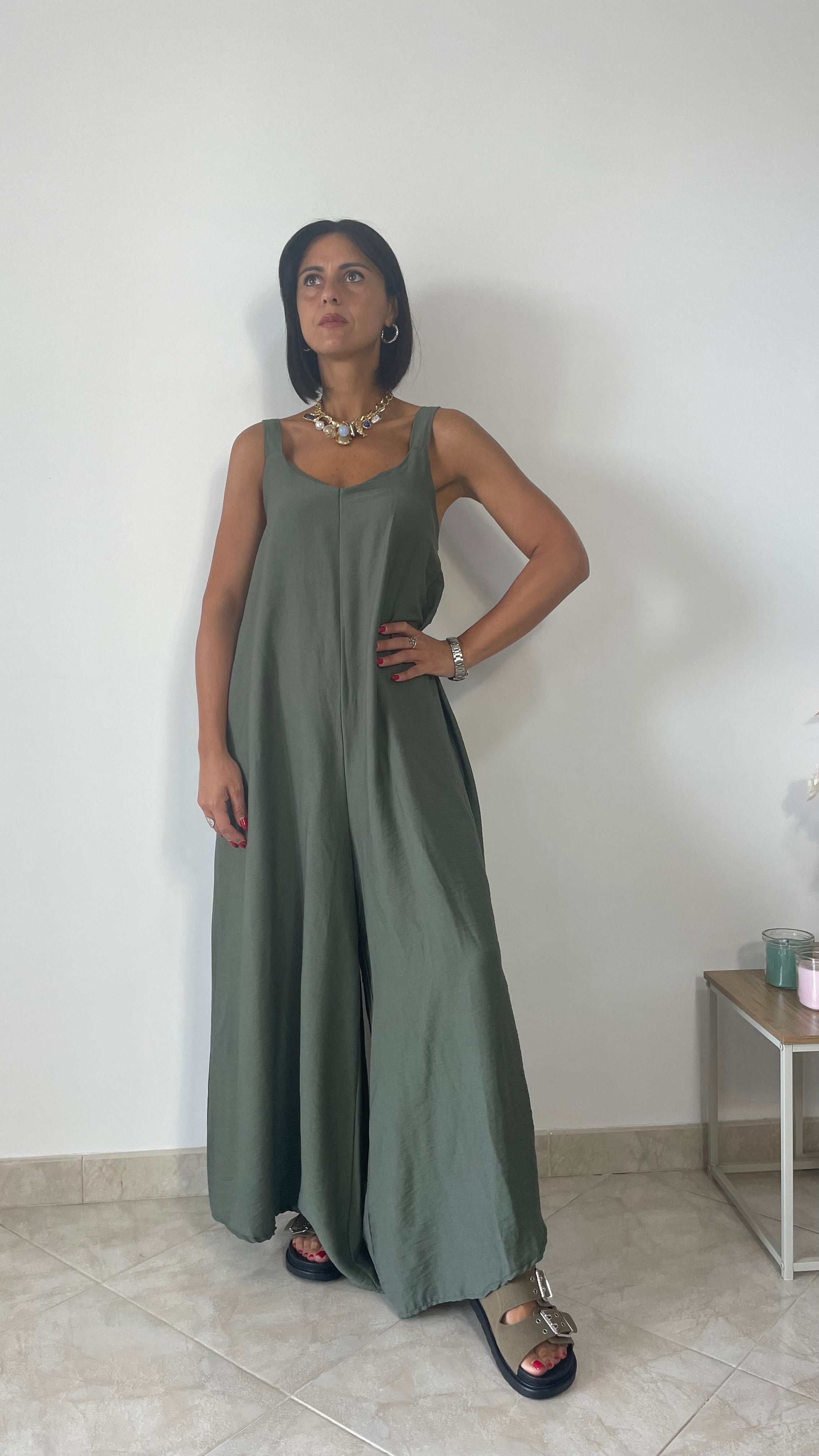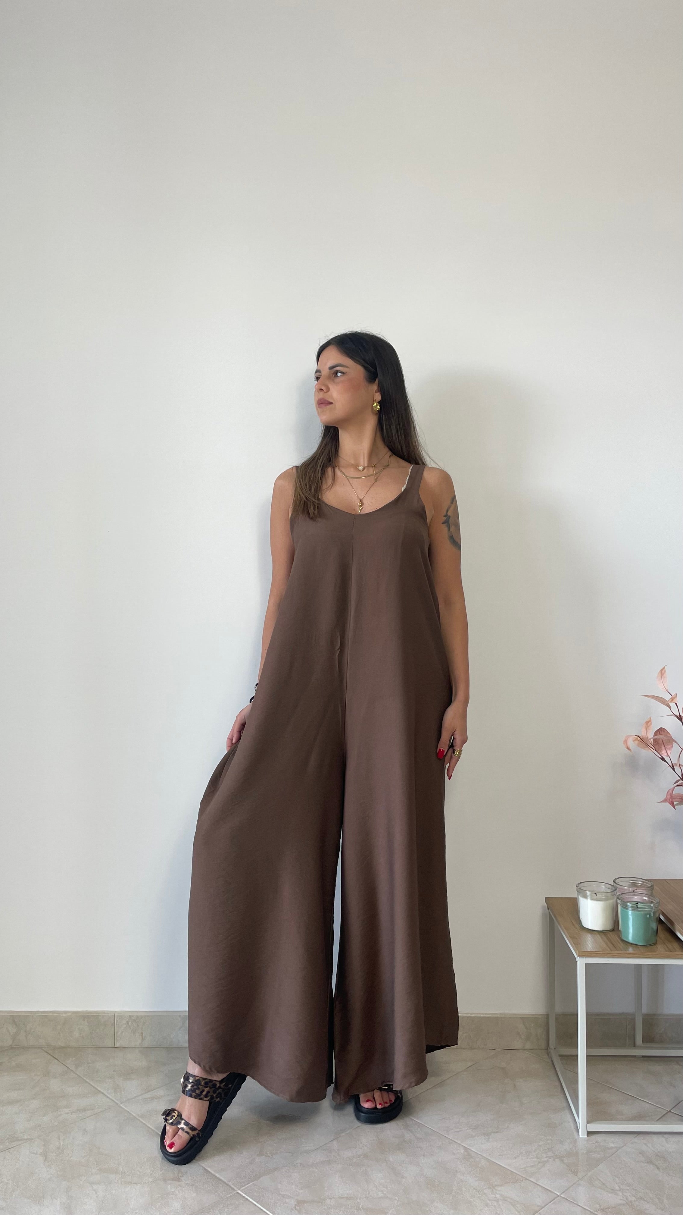 Maxi tuta oversize con fama e fondo largo