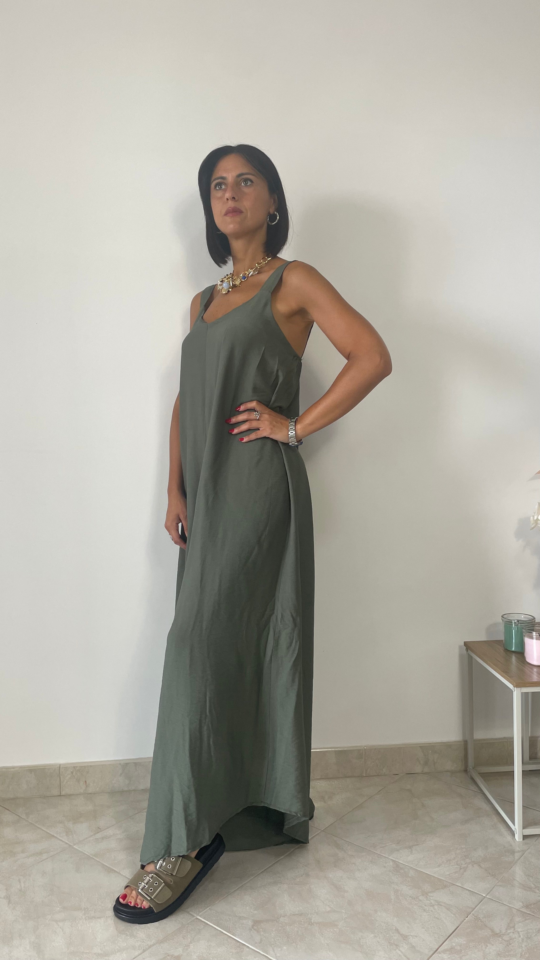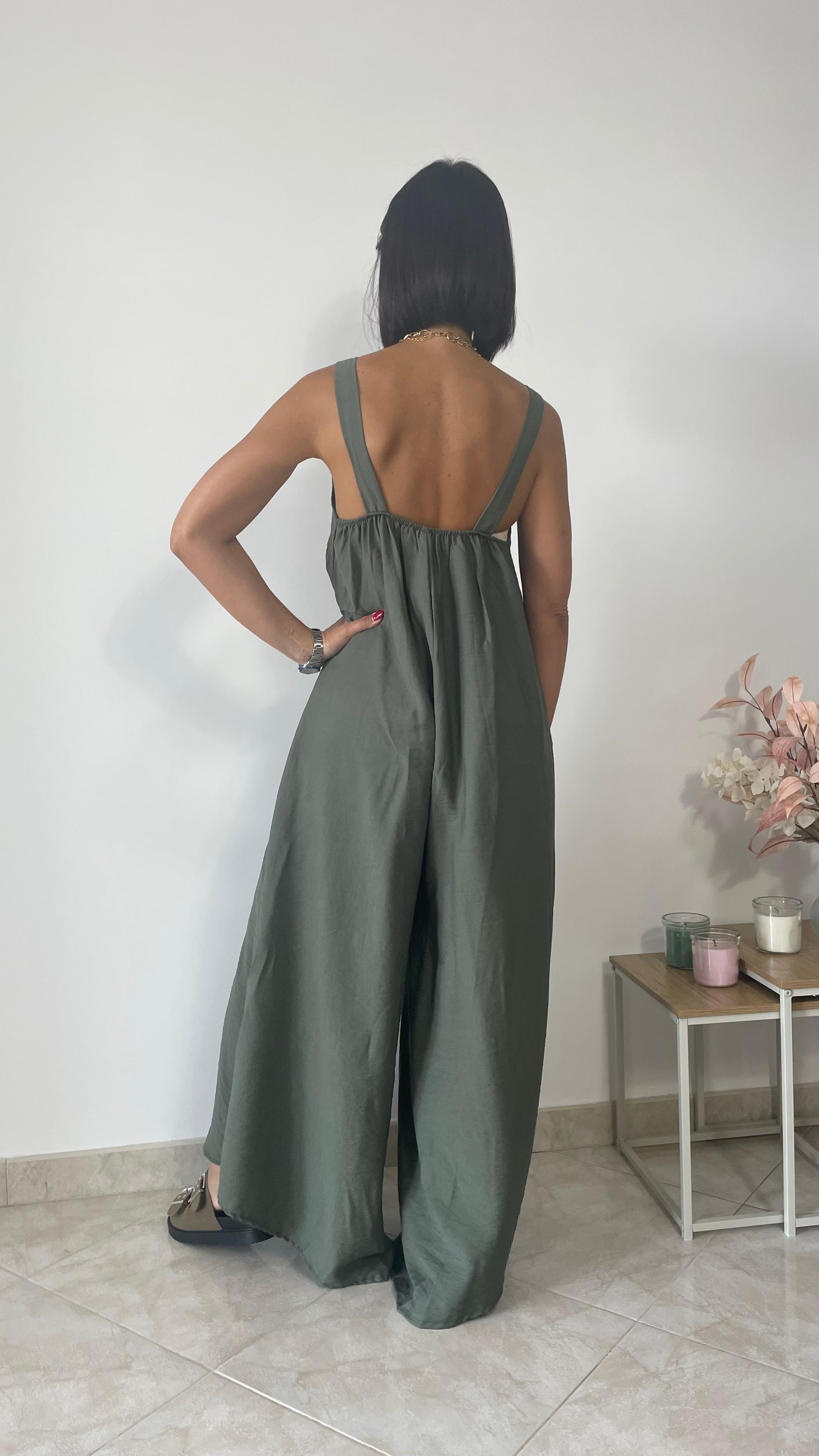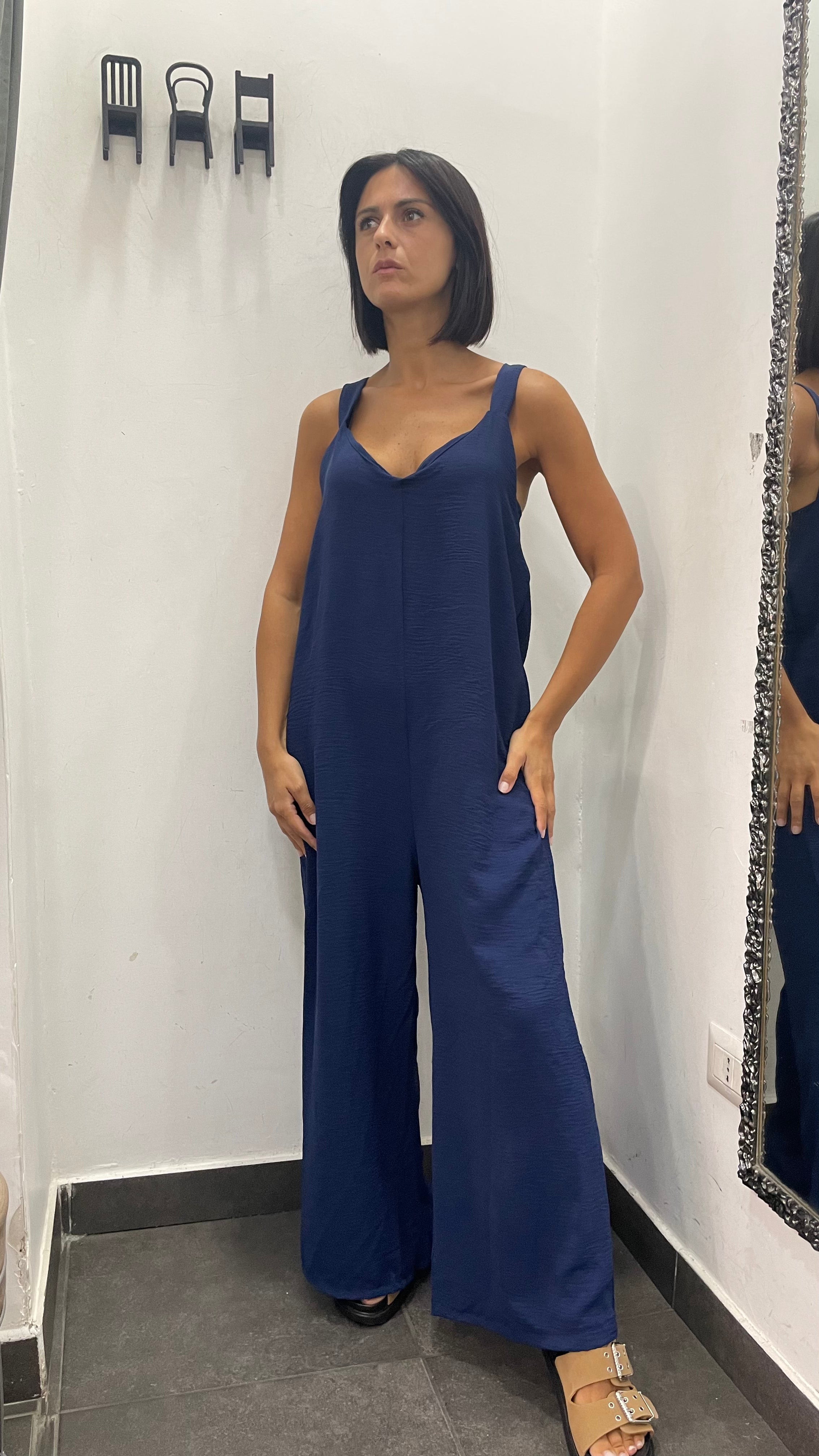 Maxi tuta oversize con fama e fondo largo