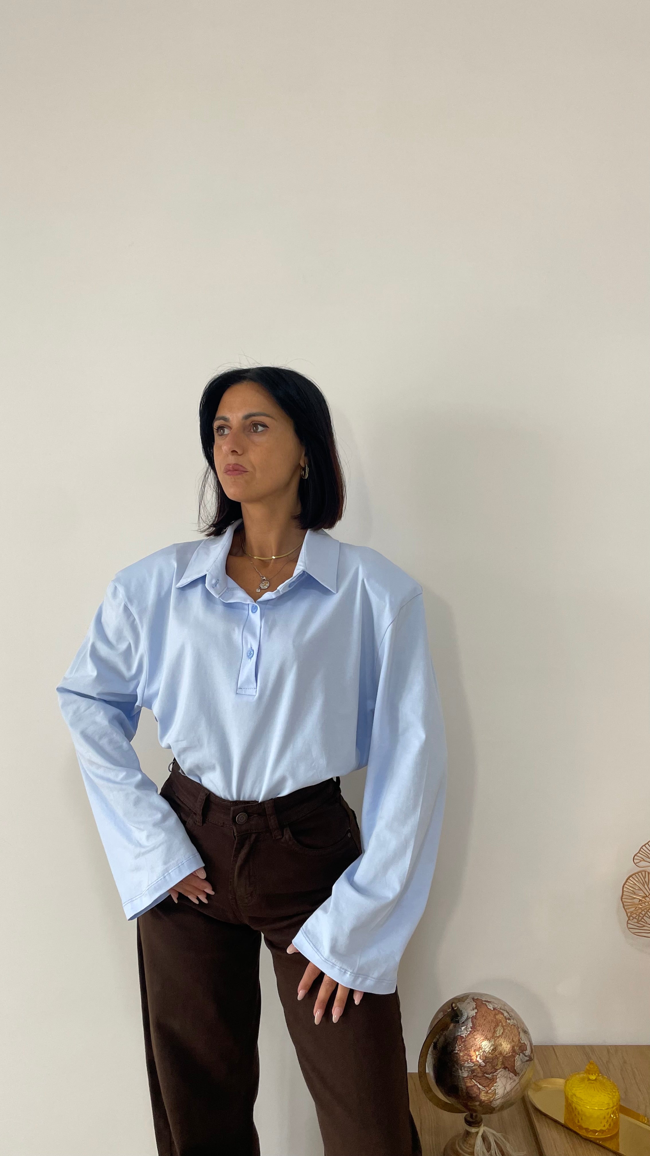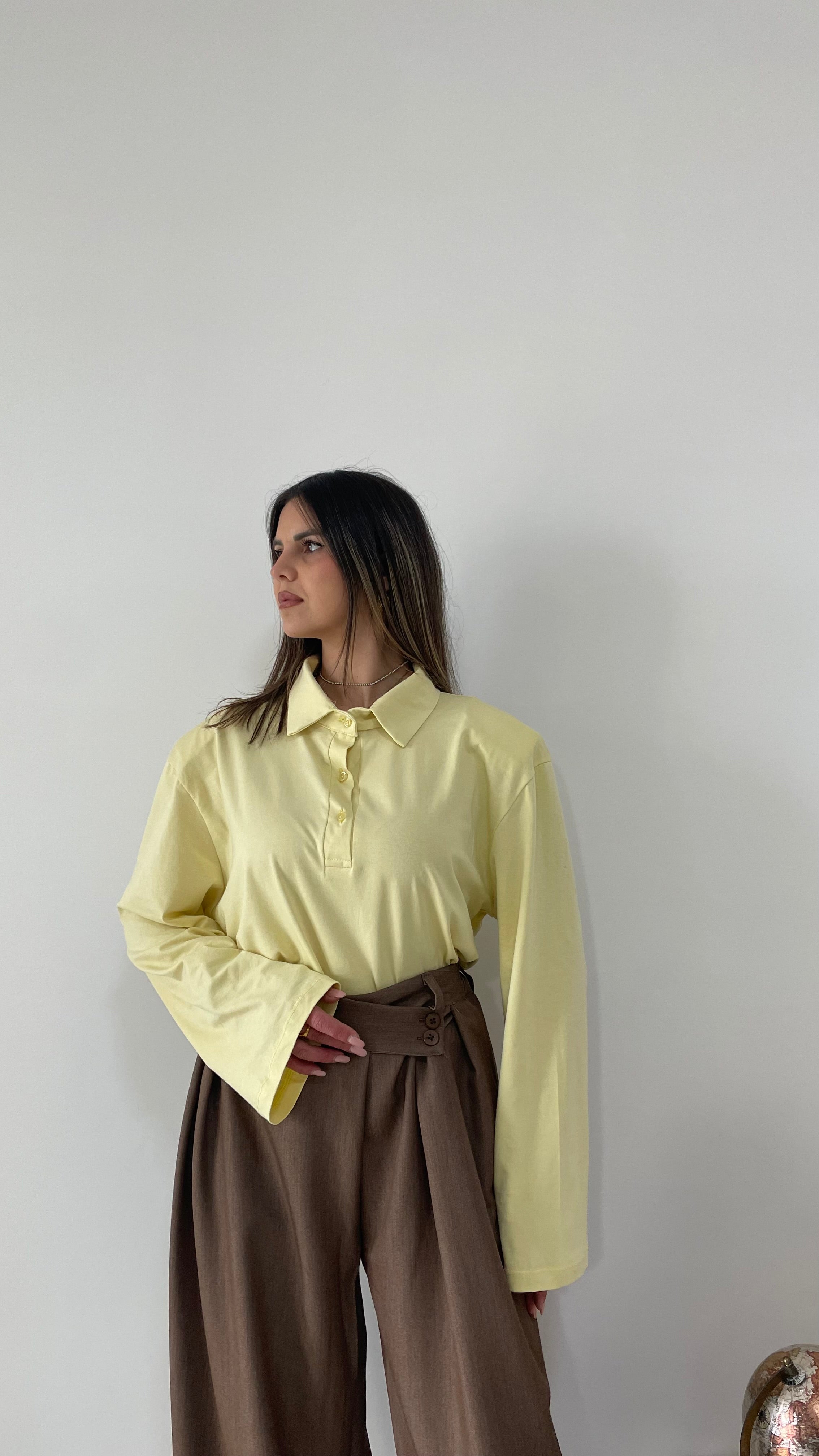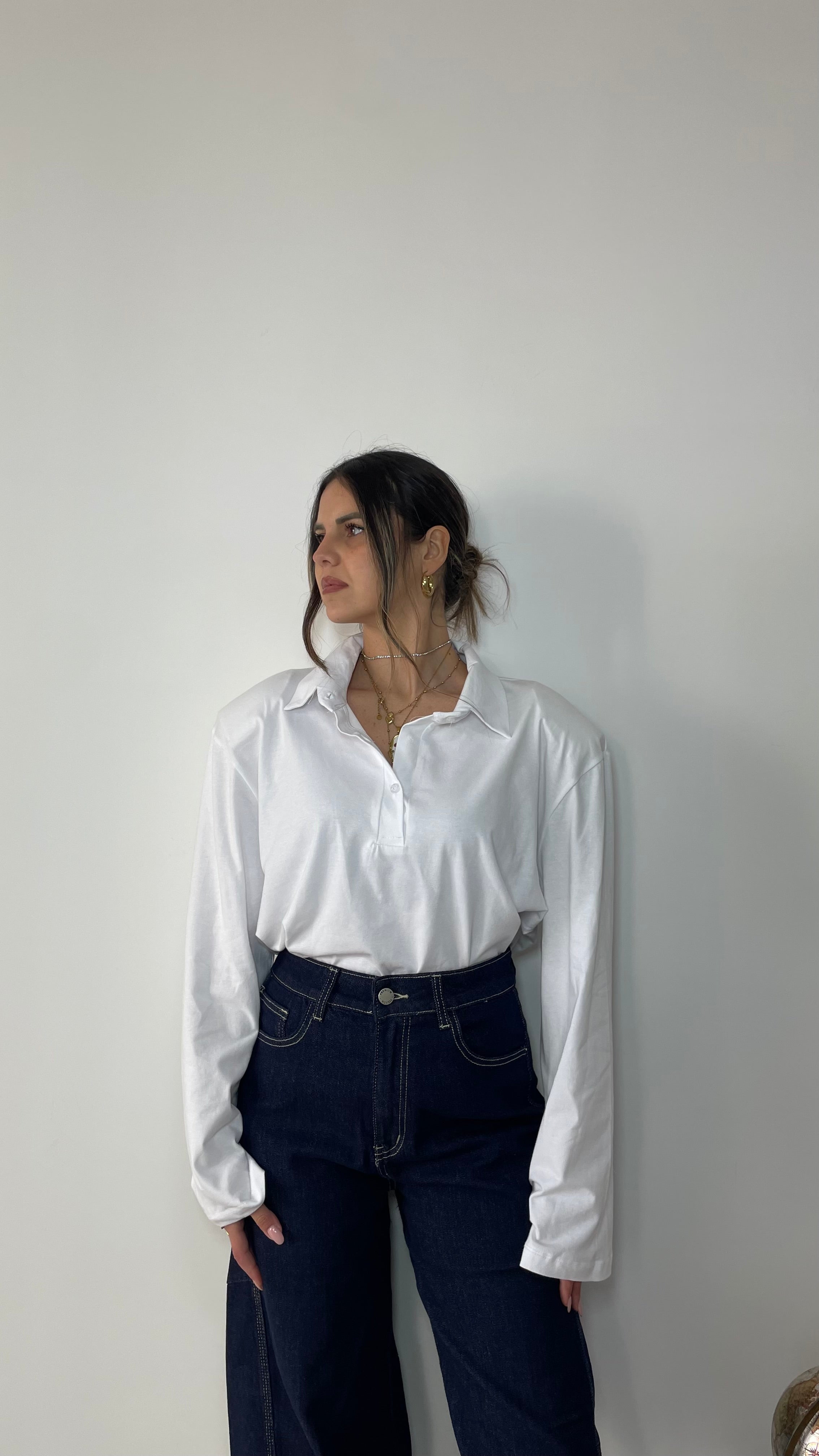 La polo Icona è un modello oversize con spalline imbottite .