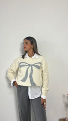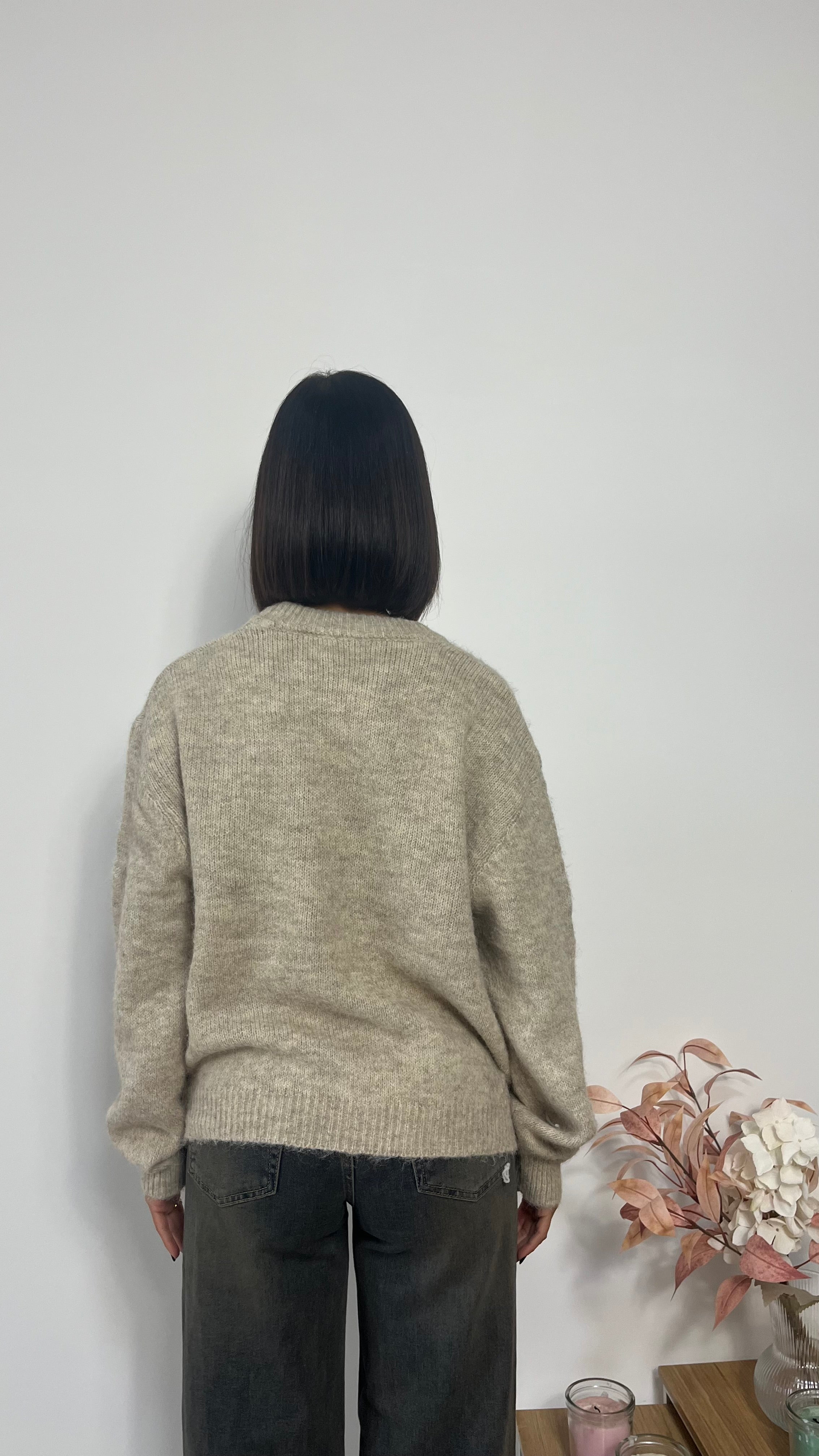 Il maglioncino è un modello girocollo taglia unica con vestibilità regolare sulla lunghezza. Veste fino alla tg L.