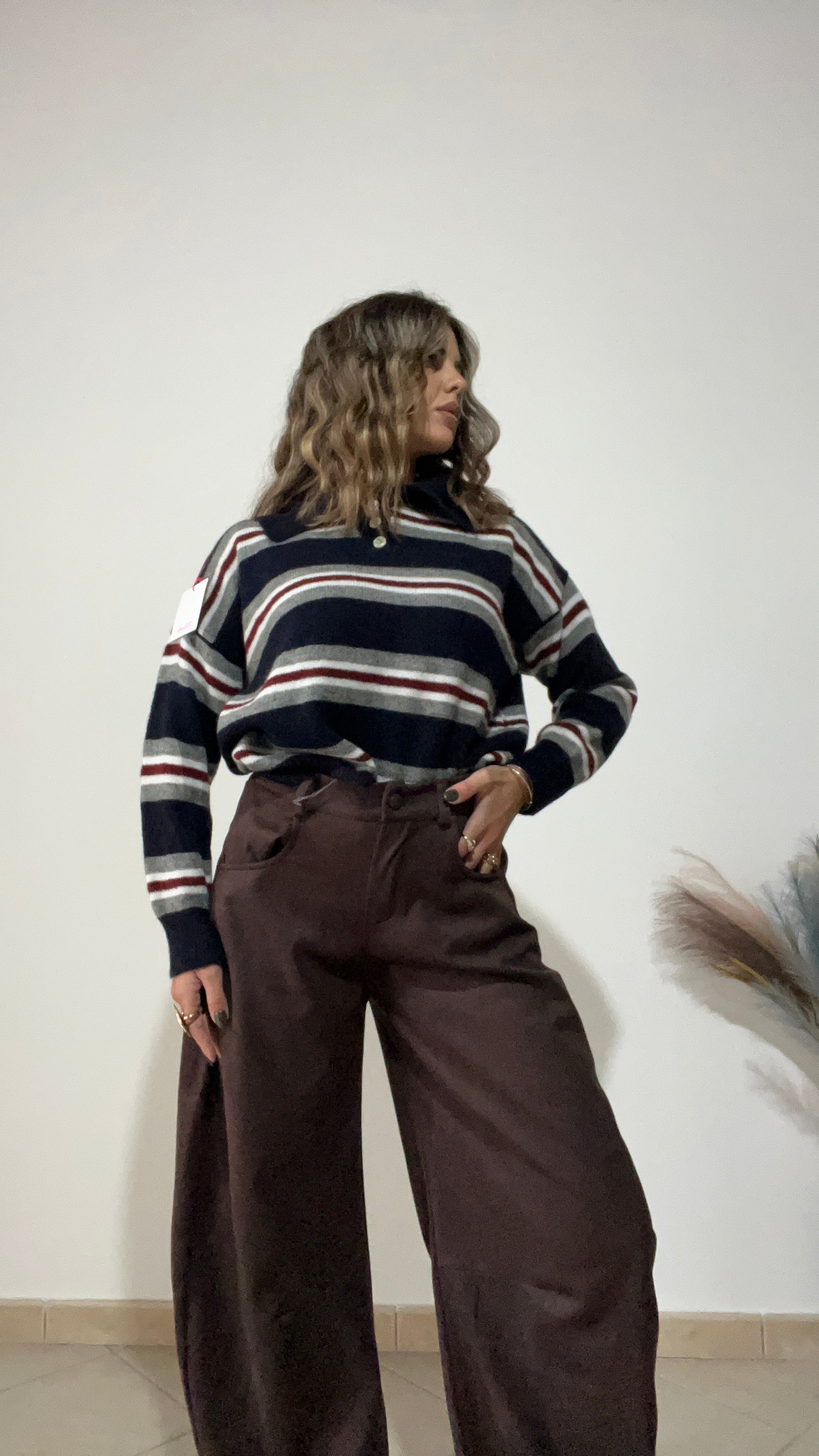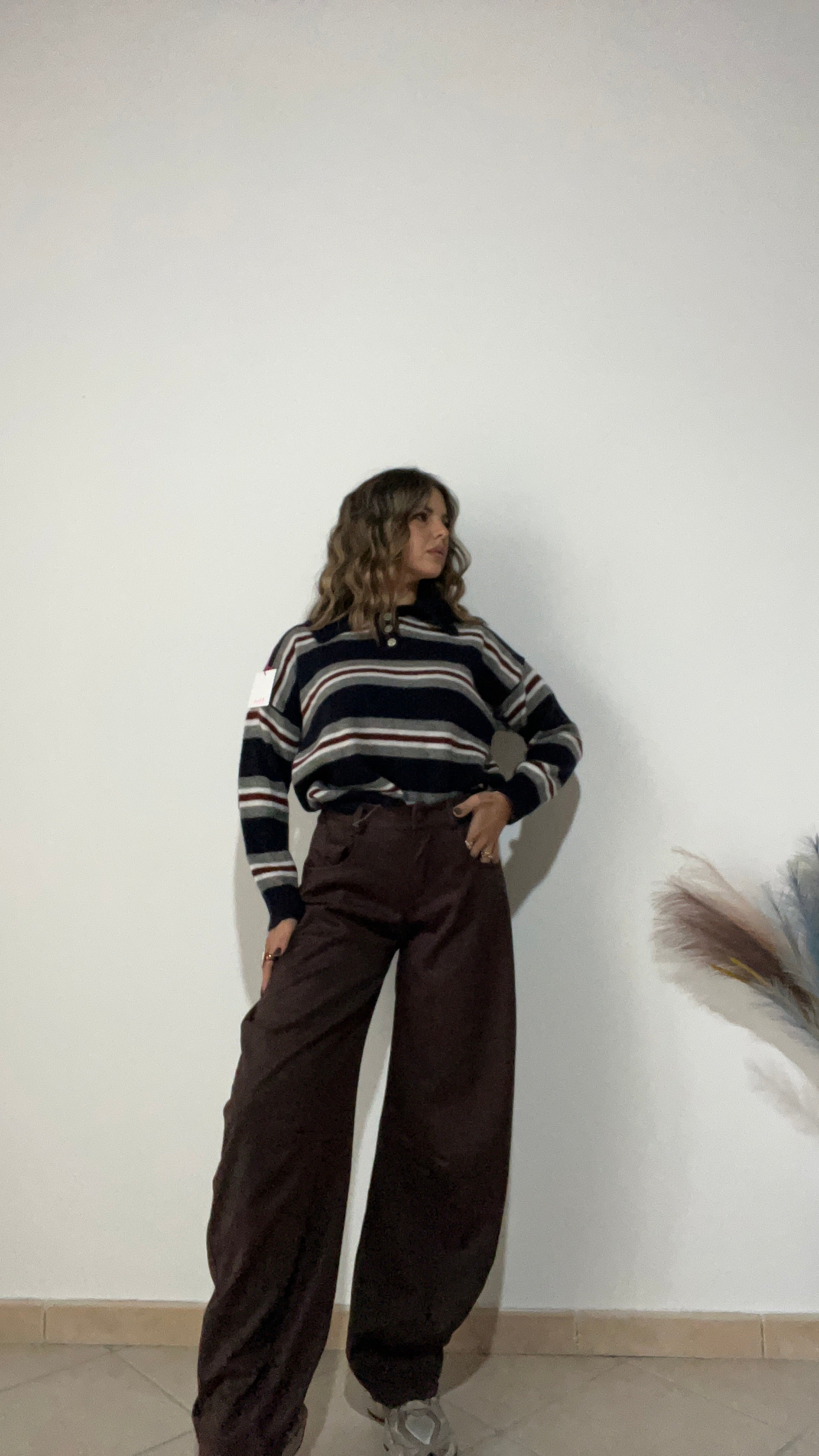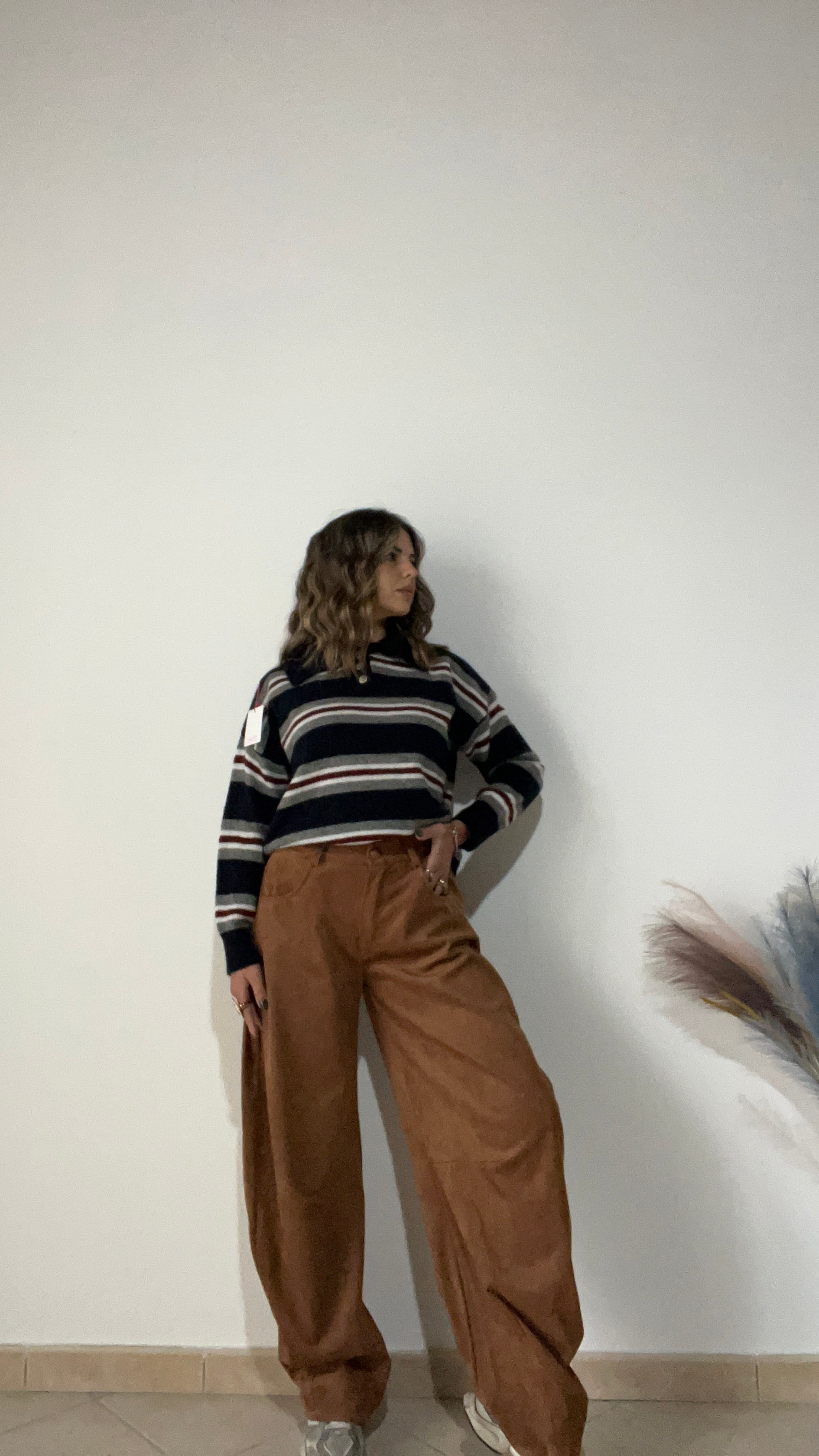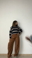 Pantaloni modello balloon in tessuto renna .