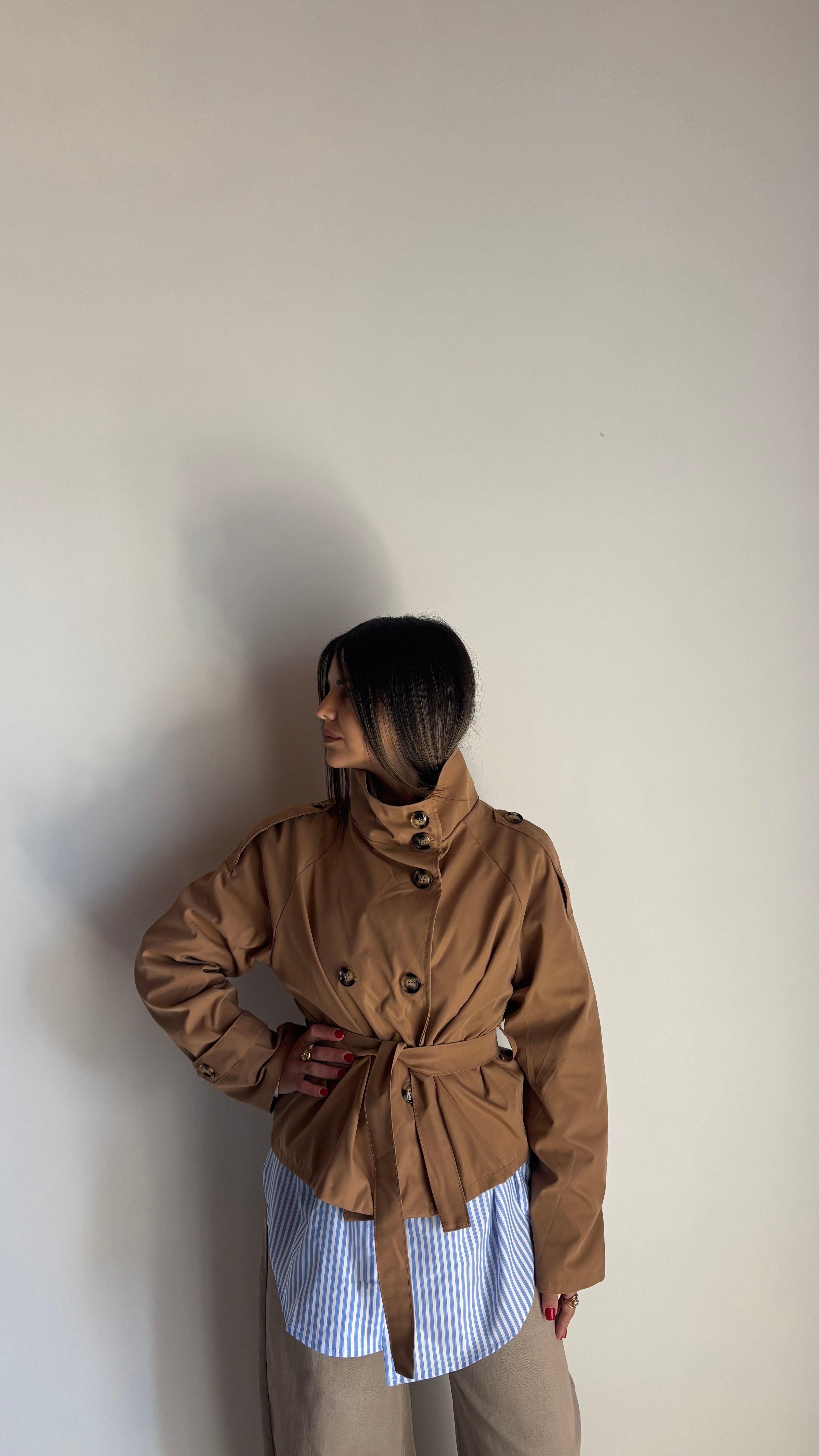 Trench modello doppiopetto, cintura in vita .